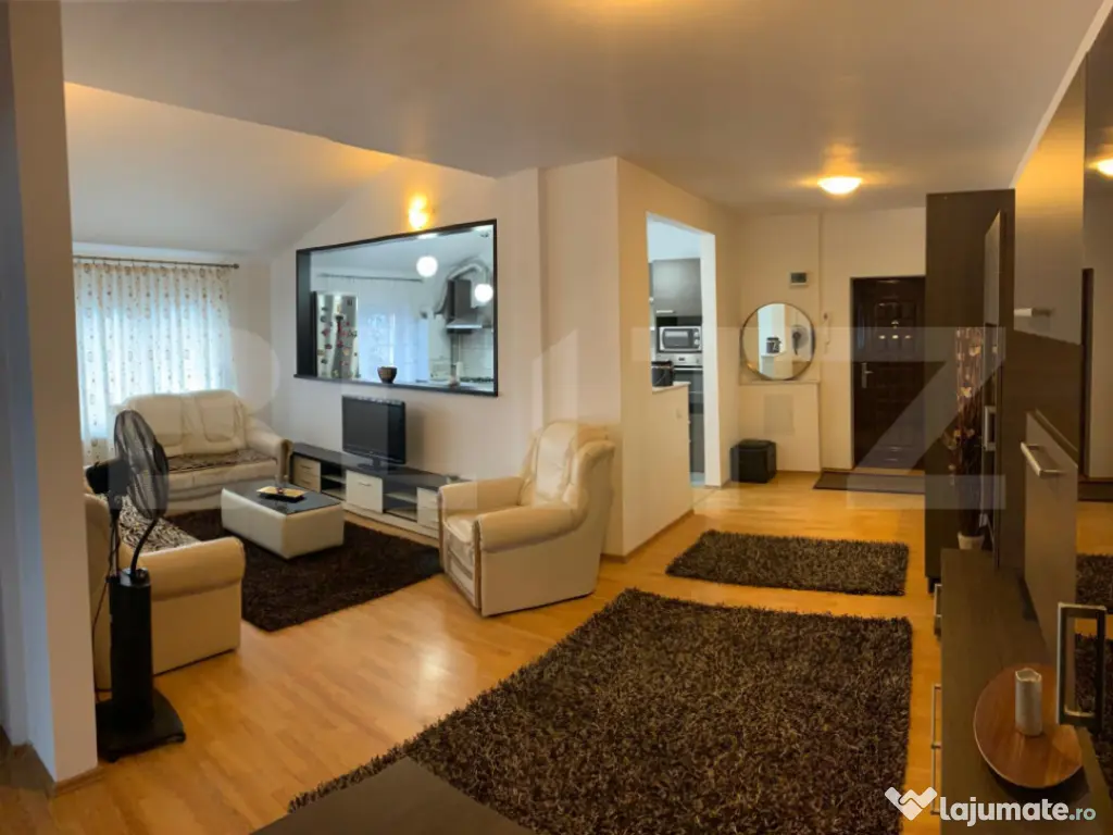 Blitz vă propune spre vânzare un apartament de 2 camere, semidecomandat, situat într-o zonă semicentrală, ideal atât pentru locuință personală, cât și pentru investiție. Locuința are o suprafață utilă de 63 mp și este compartimentată eficient, beneficiind de bucătărie separată și baie cu geam, un avantaj important pentru confortul zilnic. Apartamentul se află la etajul 3 din 3, având pod deasupra, ceea ce oferă un plus de izolație și liniște. Imobilul este construit în anul 2015 și este unul restrâns, cu doar 18 apartamente, asigurând intimitate și un ambient plăcut. Unul dintre punctele forte ale proprietății este terasa generoasă de 12 mp, care oferă un view superb — perfect pentru relaxare. Se vinde complet finisat și mobilat, fiind pregătit pentru mutare imediată. Separat, se poate achiziționa un loc de parcare exterior la prețul de 10.000 euro. Pentru mai multe informatii sau vizionare nu ezitati sa ne contactati ! Cod ofertă / ID BLITZ: P167407 Id intern: P167407 Confort: 1 Tip imobil: Bloc de apartamente Număr Băi: 1 Nr. locuri parcare: 1