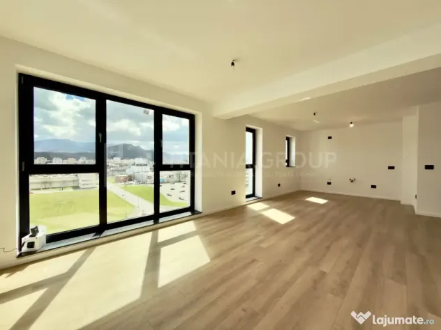 Apartamentul îți oferă o adevărată experiență de viață la munte, având ferestre mari și o vedere panoramică superbă.