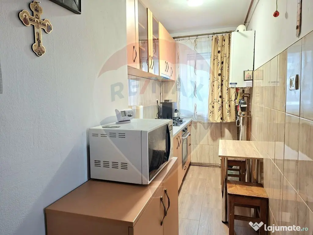 RE/MAX Dynamic vă propune spre vânzare în calitate de reprezentant exclusiv al proprietarului, fără comision pentru cumpărător , un apartament cu 2 camere, situat în zona Aurel Vlaicu, una dintre cele mai apreciate și bine conectate zone ale orașului. Se acceptă si schimb cu casă in jurul Aradului. Apartamentul este amplasat la parterul unui bloc de apartamente și are o suprafață de 53 mp, conform Cărții Funciare, compartimentare semidecomandată și orientare sud, beneficiind de lumină naturală pe tot parcursul zilei. Imobilul beneficiază de casă a scărilor RENOVATĂ, cu un aspect curat și primitor – un detaliu important pentru confortul zilnic și imaginea generală a blocului. Apartamentul a fost RENOVAT complet in anul 2024 și se prezintă într-o stare foarte bună, cu: - gresie și faianță noi - ușă de intrare nouă - uși interioare noi - ferestre PVC noi - finisaje moderne, de calitate Se vinde mobilat, cu mobilier de bună calitate, atent ales, electrocasnicele nefiind incluse în preț. Compartimentare: living, dormitor, bucătărie separată, baie cu geam, hol de intrare si hol intermediar cu spații pentru depozitare Dotări: - centrală termică proprie - parchet, gresie, faianță - uși interior MDF, ușă metalică la intrare - contorizare separată la toate utilitățile Apartamentul este ideal atât pentru locuit, cât și pentru investiție (chirie foarte bună în zonă, cerere constantă). Zona Aurel Vlaicu oferă acces rapid la: - mijloace de transport în comun - magazine, școli, farmacii - centre comerciale și servicii Pentru detalii și programarea unei vizionări, vă stau la dispoziție. Consultant dedicat, implicat, focusat pe rezultat. Confort: 2 Tip imobil: Bloc de apartamente Număr Băi: 1 Posibilitate parcare: Nu