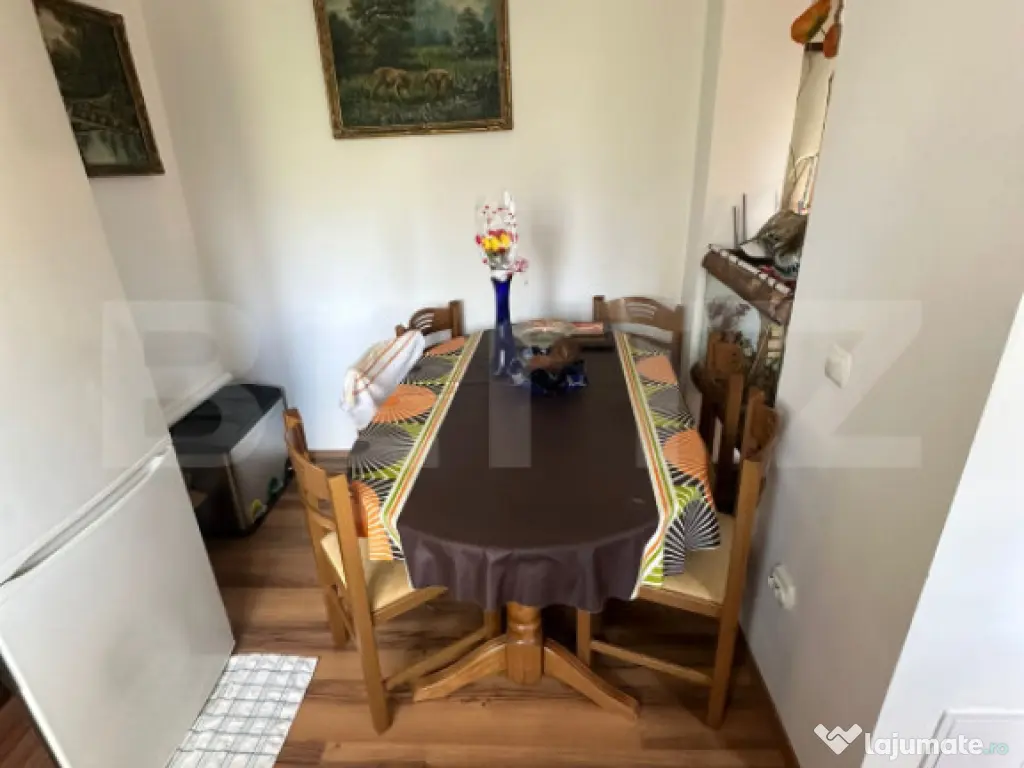 Blitz Imobiliare vă prezintă spre vânzare un apartament de 2 camere decomandate, situat în cartierul Dâmbu Rotund, o zonă în plină dezvoltare din Cluj-Napoca, apreciată pentru liniște și accesibilitate. Locuința are o suprafață utilă de 46 mp și este poziționată la etaj intermediar, oferind un echilibru ideal între confort și eficiență termică. Apartamentul se vinde complet mobilat și utilat, fiind gata de mutare imediată, fără investiții suplimentare. 2 camere decomandate Suprafață utilă: 46 mp Etaj intermediar Complet mobilat și utilat Loc de parcare Compartimentare practică și luminoasă Zona este ideală pentru locuit, oferind liniște și intimitate, departe de aglomerația urbană, dar cu acces rapid către oraș. În apropiere regăsim magazine, supermarketuri, farmacii și alte facilități esențiale, pentru confortul zilnic. De asemenea, zona beneficiază de acces facil la mijloacele de transport în comun, cu legături rapide către centrul orașului și principalele puncte de interes. În plus, există spații verzi și zone de relaxare, ideale pentru plimbări și timp liber. Acest apartament reprezintă o oportunitate excelentă atât pentru locuit, cât și pentru investiție, datorită poziționării și faptului că este complet pregătit pentru noul proprietar. Blitz Imobiliare vă așteaptă la vizionare! Cod ofertă / ID BLITZ: P170251 Id intern: P170251 Confort: 1 Tip imobil: Bloc de apartamente Număr Băi: 1