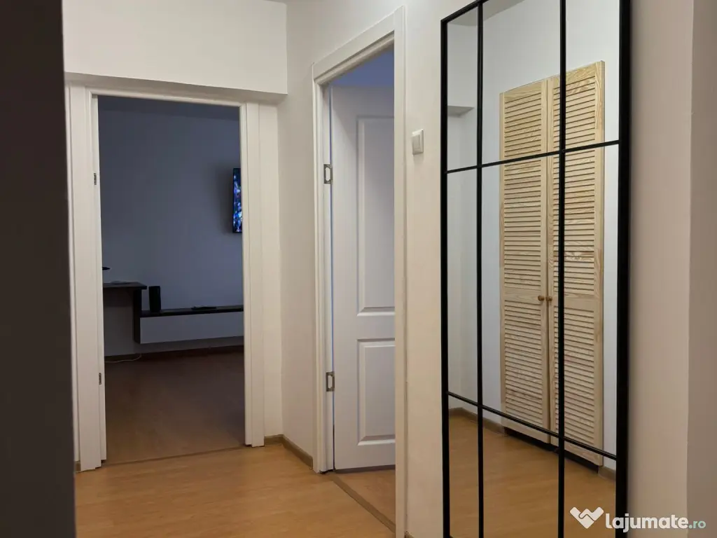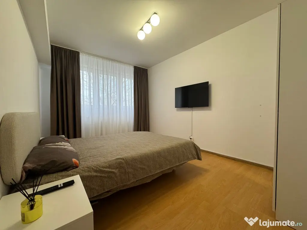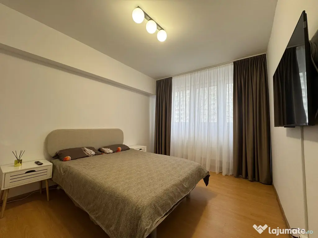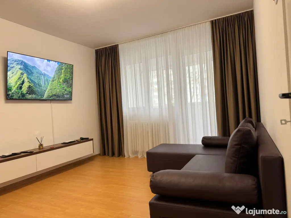 Apartamentul este la prima inchiriere, proaspat renovat si utilat (aparat de cafea, cuptor microunde, plita pe gaz, cuptor electric, hota, masina de spalat, frigider neofrost, 2 televizoare QLED).