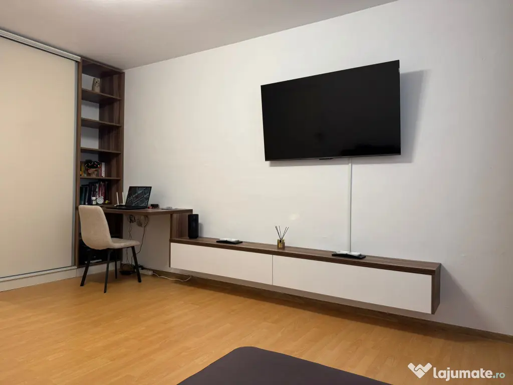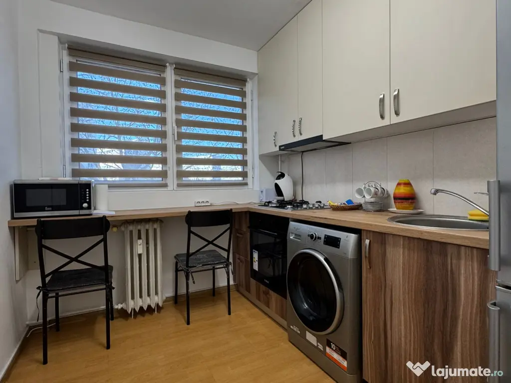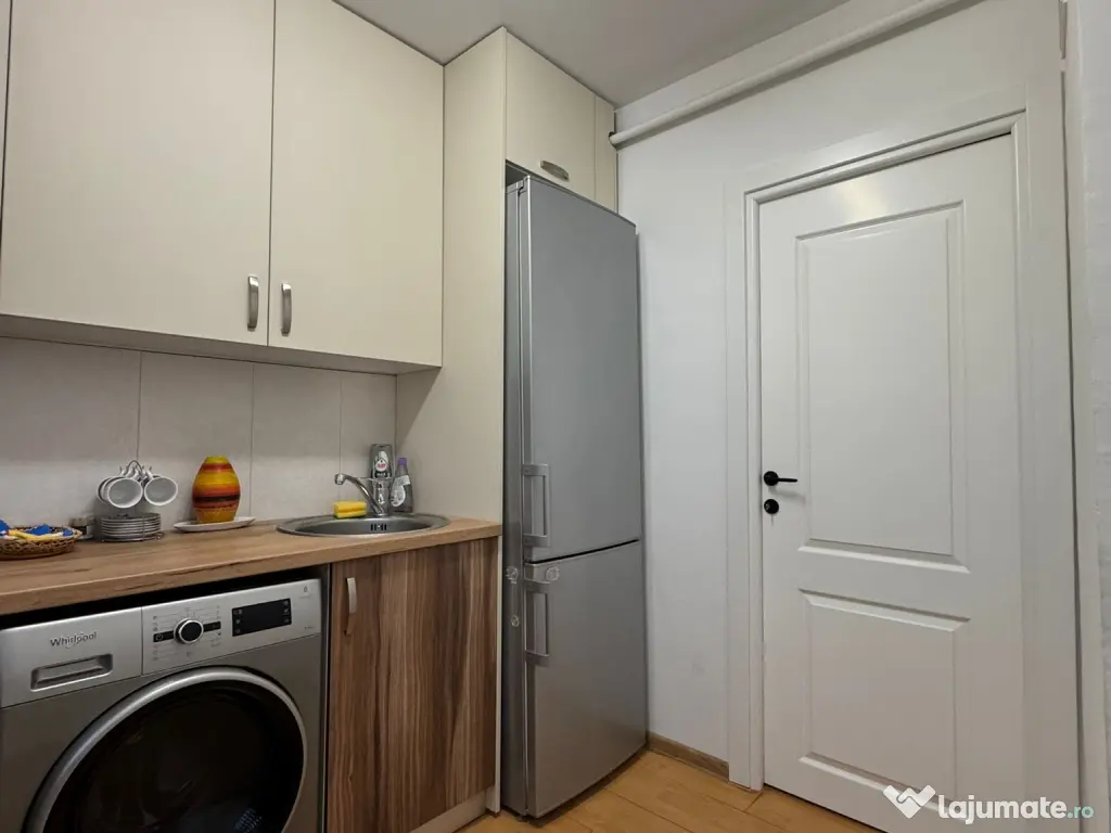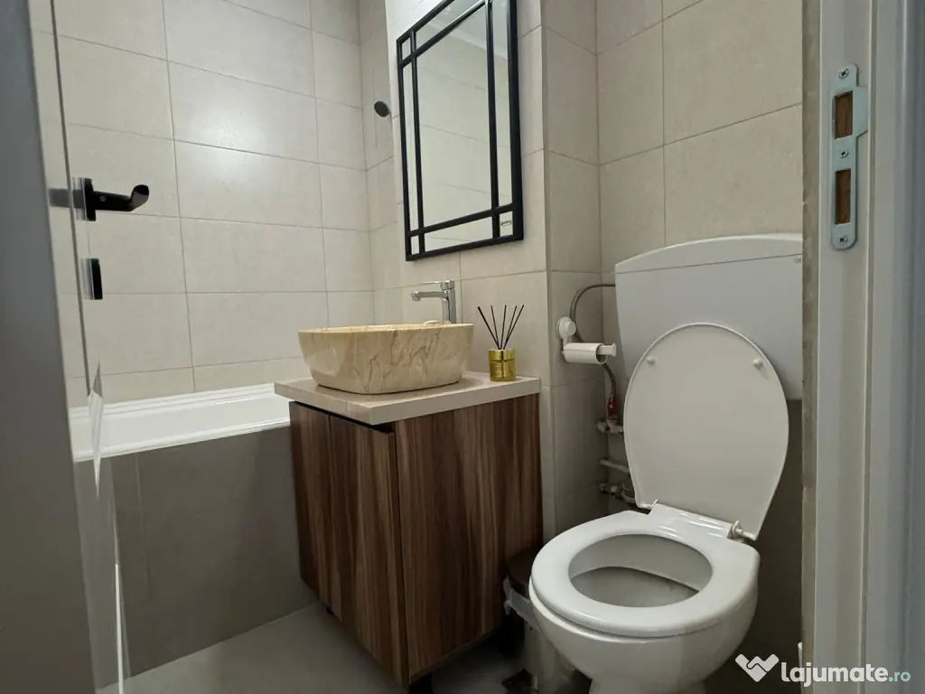 Apartamentul este la prima inchiriere, proaspat renovat si utilat (aparat de cafea, cuptor microunde, plita pe gaz, cuptor electric, hota, masina de spalat, frigider neofrost, 2 televizoare QLED).