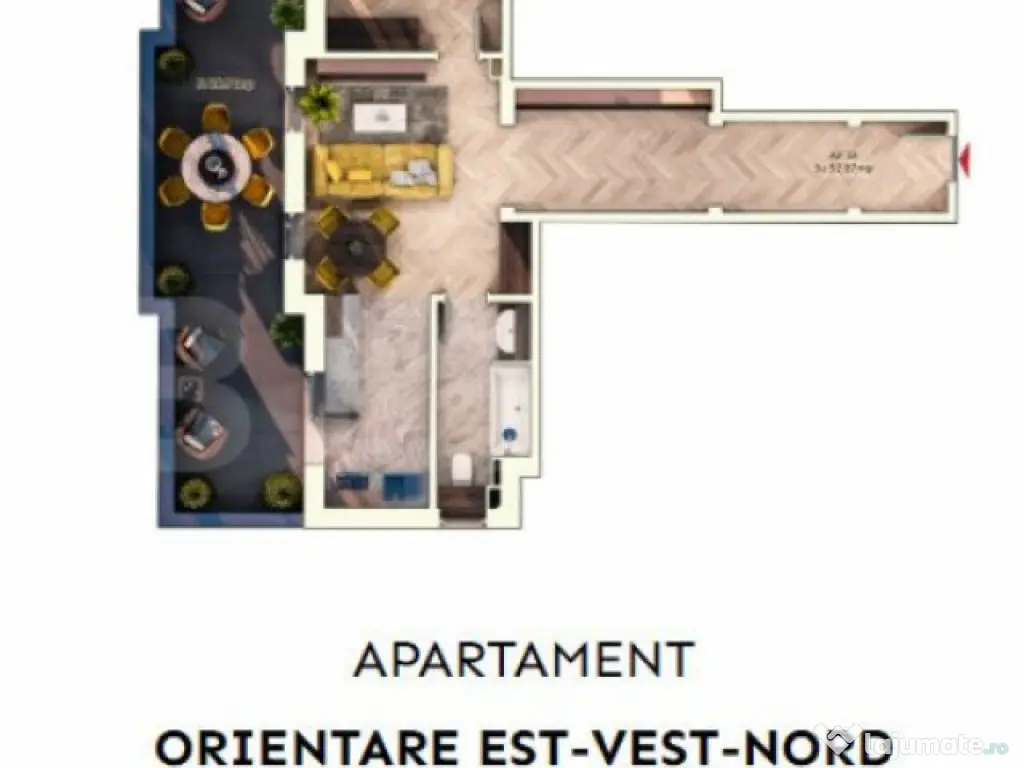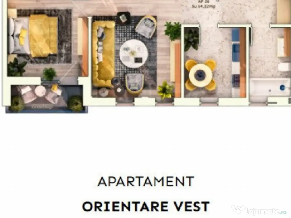Apartament 2 camere semidecomandate, 52 mp, 9.30mp balcon, p