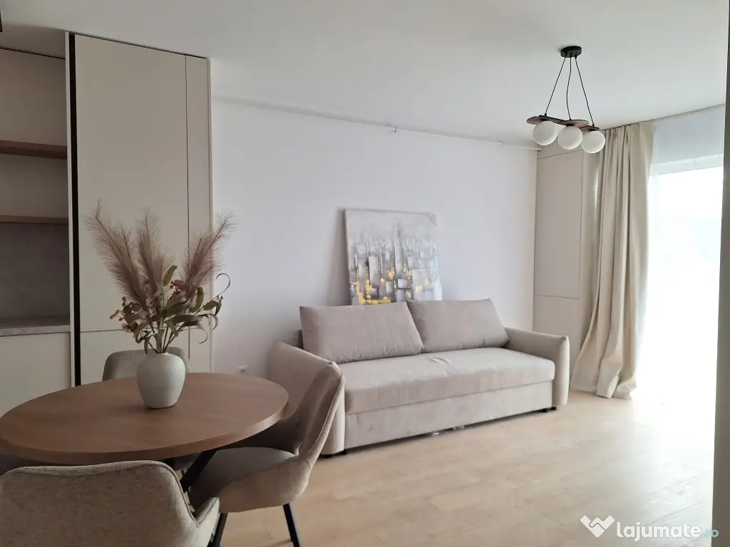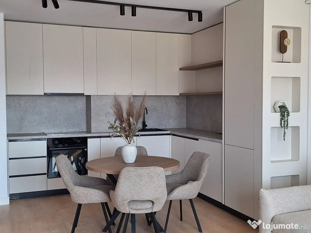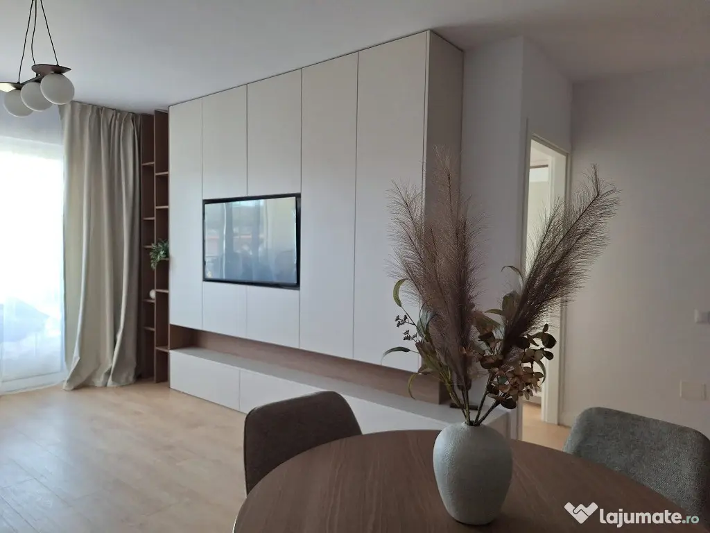 Complet nou incepand de la finisaje, mobilier, bucataria echipata cu electrocasnice: plita, cuptor, hota, masina de spalat vase, frigider, masina de spalat rufe, baie utilata cu obiecte sanitare, decoratiuni, perdele, prize, intrerupatoare; incalzire prin pardoseala, centrala termica.