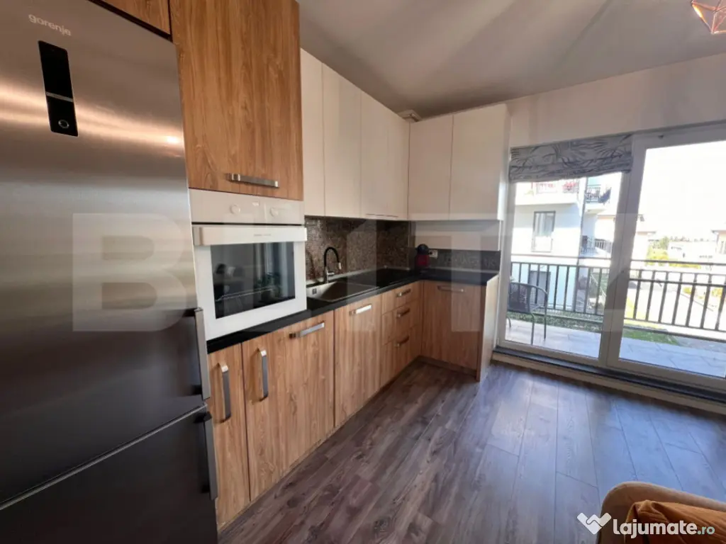 Blitz oferă spre închiriere apartament cu 2 camere, 60 m², cartier Europa, Cluj-Napoca Apartamentul are o suprafață utilă de 60 m² și este situat într-un imobil nou, la etajul 1 din 3, într-o zonă liniștită și apreciată a cartierului Europa. Locuința este compartimentată modern și eficient, fiind compusă din living open space cu bucătărie, dormitor, baie și două balcoane. Un balcon este poziționat în zona de living, iar cel de-al doilea în dormitor, oferind spații ideale pentru relaxare. Dormitorul dispune de două dressing-uri, asigurând un spațiu generos pentru depozitare. Bucătăria este complet mobilată și utilată, fiind dotată cu plită electrică, cuptor și frigider. În living se află și un Smart TV, oferind un plus de confort. Baia este modernă și echipată cu cabină de duș. Apartamentul beneficiază de centrală termică proprie, cu încălzire în pardoseală în baie, iar în restul locuinței încălzirea se face prin calorifere. Blocul este izolat termic, contribuind la un consum redus de energie. În preț este inclus un loc de parcare subterană. Apartamentul este ideal pentru un cuplu sau pentru persoane care își doresc o locuință modernă, bine compartimentată, într-o zonă liniștită. Pentru mai multe detalii sau programarea unei vizionări, vă invităm să ne contactați. Cod ofertă / ID BLITZ: P167288 Id intern: P167288 Confort: 1 Tip imobil: Bloc de apartamente Număr Băi: 1 Nr. locuri parcare: 1