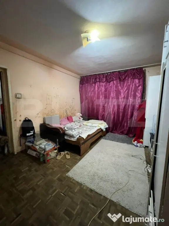Blitz va propune spre vanzare un apartament cu 2 camere de 44 mp in cartierul Gheorgheni, zona Hermes. Locatie foarte buna cu multe spatii verzi. Bloc recent reabilitat termic, cu fatada moderna, lift nou si hidroizolatia refacuta. Acesta are usa metalica la intrare, geamuri PVC, balcon închis cu intrare din living. Apartamentul necesita renovare, ideal si pentru investitie.