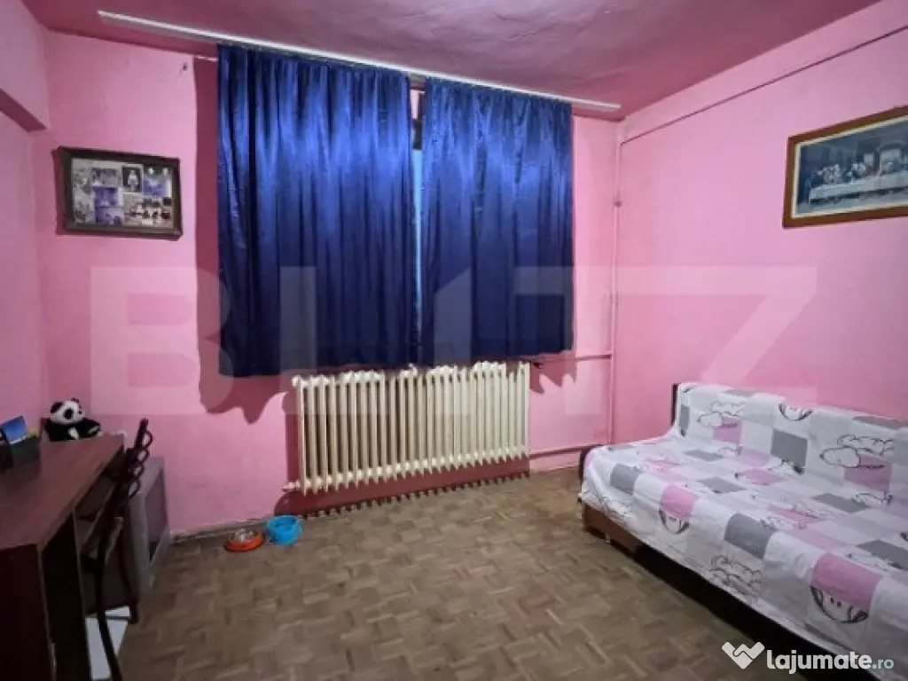 Blitz va propune spre vanzare un apartament cu 2 camere de 44 mp in cartierul Gheorgheni, zona Hermes. Locatie foarte buna cu multe spatii verzi. Bloc recent reabilitat termic, cu fatada moderna, lift nou si hidroizolatia refacuta. Acesta are usa metalica la intrare, geamuri PVC, balcon închis cu intrare din living. Apartamentul necesita renovare, ideal si pentru investitie. Cod ofertă / ID BLITZ: P136758 Id intern: P136758 Confort: 1 Tip imobil: Bloc de apartamente Număr Băi: 1