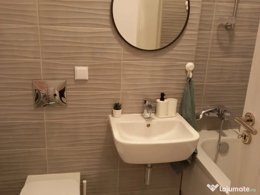 Se inchiriaza apartamentul socrilormei de 72 mp, situat la demisol in complexul GrandVia. Are 2 camere si 2 bai (una are dus, iar cealalta are cada). Este dotat cu mobilier și electrocasnice: mașină de spălat, uscator electric, frigider, plită, cuptor, TV etc.