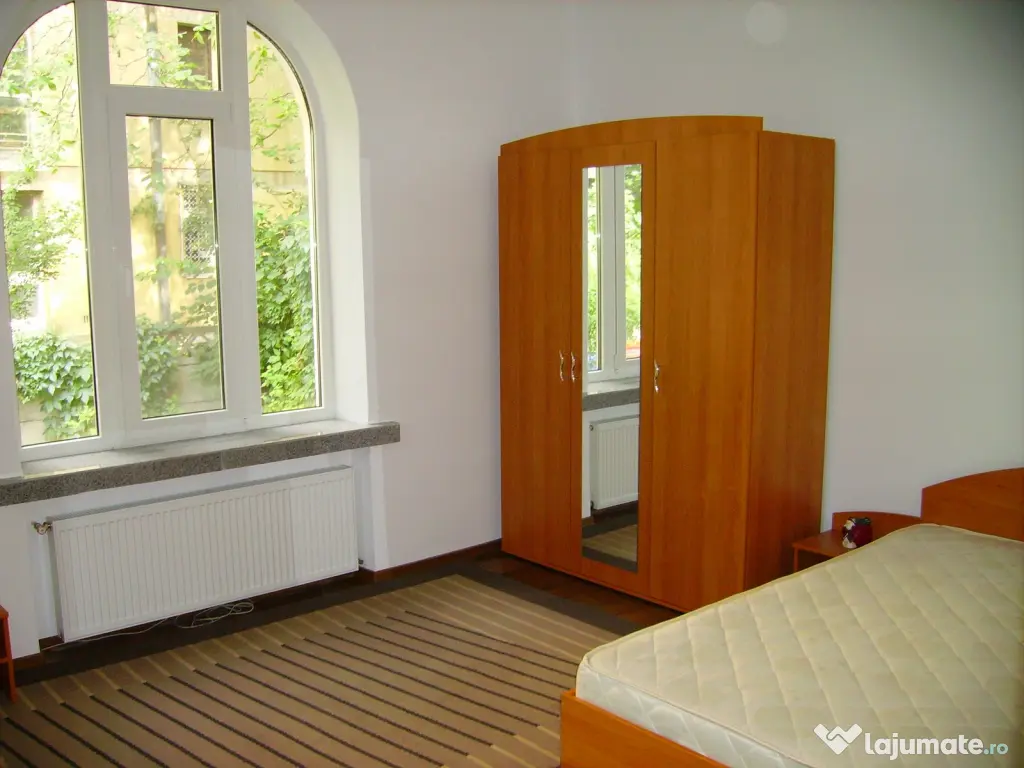 Apartament modern cu 2 camere la parter în vilă P+1 în Zona Dorobanți, Sectorul 1, ultracentral, în curte comună. Se află la 600 de metri de metroul Piața Romană, iar în apropiere se află Școala Nr. 5, Liceul Teoretic 'George Călinescu', ASE, British Council, și parcurile Ioanid și Grădina Icoanei, fiind o zonă potrivită pentru familii cu copii. În apropiere se află și magazinele Carrefour, Mega Image, Pepco, dm și bănci BRD, Raiffeisen. Zona este liniștită, ferită de zgomotul și poluarea traficului.