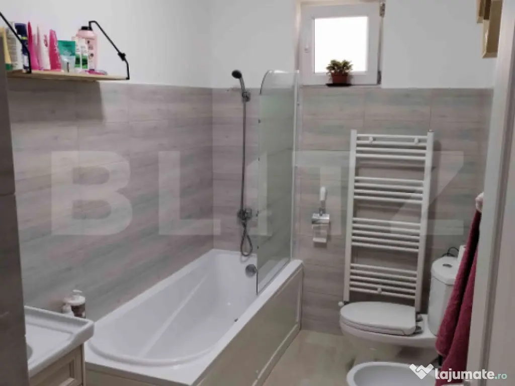Blitz vă propune spre achiziție un apartament cu 2 camere, decomandat, cu o suprafață utilă de 48 de metri pătrați, situat la etajul 2 al unui imobil construit în anul 2020, în Cartierul Astoria din Lunca Cetățuii. Locuința este complet mobilată și utilată, intabulată și disponibilă imediat, reprezentând o opțiune excelentă atât pentru locuit, cât și pentru investiție. Prețul de vânzare este de 83.000 de euro, iar achiziția poate fi realizată și prin credit. Apartamentul impresionează prin compartimentarea practică și spațiile bine organizate. Holul oferă acces către un spațiu suplimentar de depozitare situat în pod, un avantaj rar întâlnit în acest tip de compartimentare. Bucătăria este separată și complet utilată, incluzând frigider, plită, cuptor și mașină de spălat rufe, oferind confort și funcționalitate în utilizarea zilnică. Baia beneficiază de geam pentru lumină naturală și aerisire eficientă, un detaliu important pentru un plus de confort. Livingul este mobilat cu colțar, dulap și masă, iar dormitorul este echipat cu pat și saltea, dulap cu două uși și mai multe comode, oferind multiple soluții de depozitare. Finisajele moderne, ușile interioare de calitate superioară, centrala termică proprie și aparatul de aer condiționat contribuie la un nivel ridicat de confort și eficiență energetică. Apartamentul dispune, de asemenea, de un balcon deschis și de un loc de parcare dedicat. Poziționat într-un cartier liniștit, aproape de natură, dar cu acces facil către oraș, apartamentul răspunde perfect cerințelor celor care își doresc un stil de viață echilibrat, într-o zonă modernă și în plină dezvoltare. Cod ofertă / ID BLITZ: P158592 Id intern: P158592 Confort: 1 Tip imobil: Bloc de apartamente Număr Băi: 1 Nr. locuri parcare: 1