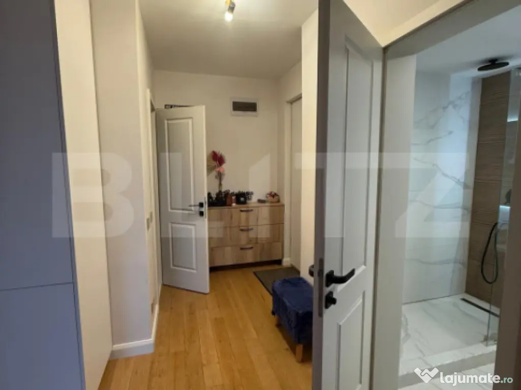 BLITZ vă propune spre vânzare un apartament cu 2 camere, situat într-un ansamblu rezidențial modern, ideal atât pentru locuință proprie, cât și pentru investiție. ???? Suprafață: 58 mp utili Terasă spațioasă de 13 mp Parter înalt, cu poziționare echivalentă etaj 1–2 ☀️ Orientare & vedere: Orientare Sud–Vest – lumină naturală pe tot parcursul zilei Vedere panoramică, neobturată ???? Confort & finisaje: Apartament ultrafinistat, gata de mutare Încălzire în pardoseală cu centrală termică proprie Lobby modern, lifturi rapide și sisteme de securitate Posibilitate servicii de administrare ???? Parcare & mobilitate: Locuri pentru biciclete Stații de încărcare pentru mașini electrice ???? Zone comune: Grădină urbană cu plante aromatice și arbuști fructiferi Spații verzi și zone de relaxare Teren de joacă pentru copii ???? Siguranță: Curte închisă Pază și supraveghere video Acces securizat în ansamblu ???? Localizare excelentă: Acces rapid la transport public Magazine și supermarketuri în apropiere -Lidl Școli, grădinițe și servicii medicale în zonă Cod ofertă / ID BLITZ: P163022 Id intern: P163022 Confort: 1 Tip imobil: Bloc de apartamente Număr Băi: 1