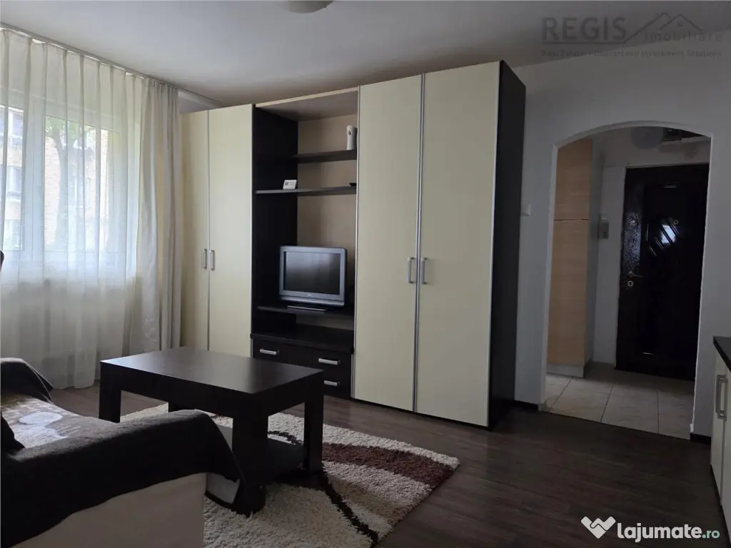 ID intern: 6825 REGIS Imobiliare va propune spre inchiriere un apartament cu 2 camere, semidecomandat, situat intr-o zona linistita si verde, foarte aproape de centrul Brasovului. Blocul are o localizare excelenta, in apropiere de restaurante, magazine, supermarketuri, spital, statii de autobuz, scoli si gradinite. Se ajunge foarte repede in centrul orasului. Locuinta se afla la parter, cu o gradina verde in fata blocului. Apartamentul este utilat si mobilat complet, are multe spatii de depozitare si este potrivit pentru un cuplu sau o singura persoana. Nu sunt acceptate animale de companie. Conditii de inchiriere: plata chiriei pentru o luna garantie Comisionul agentiei 50% TVA Pentru mai multe detalii sau programarea unei vizionari, nu ezitati sa ne contactati! 0774994172 Ilona Confort: 1 Tip imobil: Bloc de apartamente Număr Băi: 1