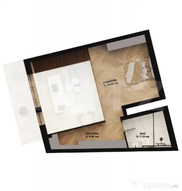 Zona de zi este gândită open space, cu bucătărie modernă, ideală pentru un stil de viață dinamic și contemporan. La nivelul superior, dormitorul oferă intimitate și confort, fiind completat de un dressing walk-in generos, perfect organizat.