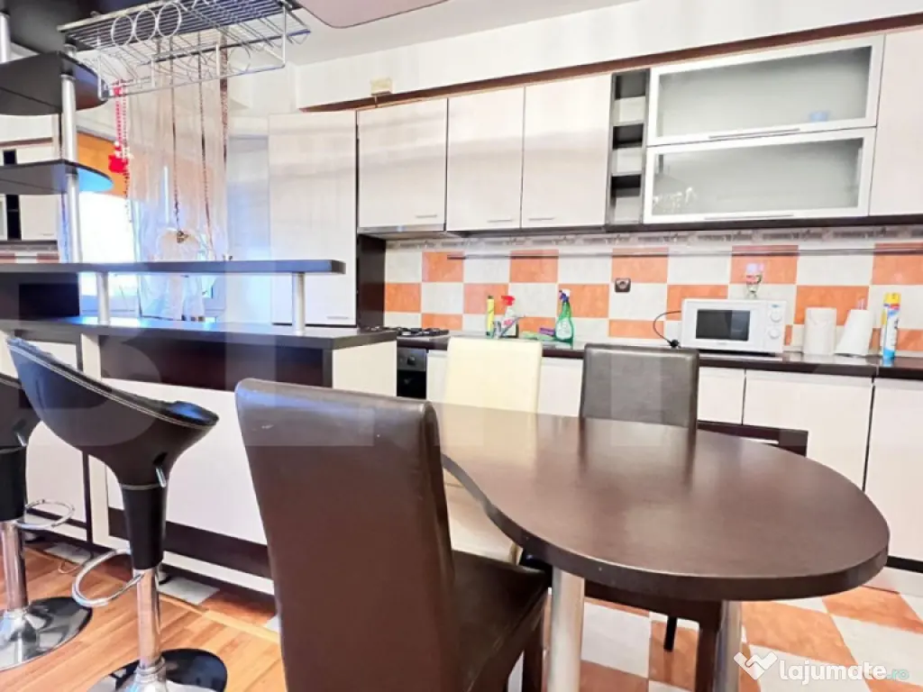 Blitz va ofera spre inchiriere apartament de 2 camere, 62 mp utili, in zona semicentrala. In proximitatea acestuia se gasesc magazine, restaurante, cafenele, farmacie, la doar 7 minute distanta fata de centru vechii si de Univestitate. Apartamentul este situat la etajul 5 al unui bloc de 8 niveluri care dispune de lift, este decomandat, iar compartimentarea este dispusa astfel: dormitor, living open space cu bucatarie spatioasa cu zona de dining, o baie cu cada, balcon inchis si unul deschis. Apartamentul este complet mobilat si utilat, si dispune de televizoare smart, masina de spalat haine, aragaz, cuptor, hota, frigider, cuptor cu microunde, aer conditionat si centrala termica. Va asteptam cu mai multe detalii la o vizionare. Cod ofertă / ID BLITZ: P104798 Id intern: P104798 Confort: 1 Tip imobil: Bloc de apartamente Număr Băi: 1 Nr. locuri parcare: 1