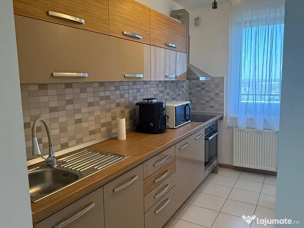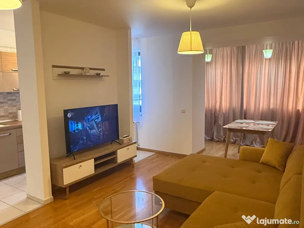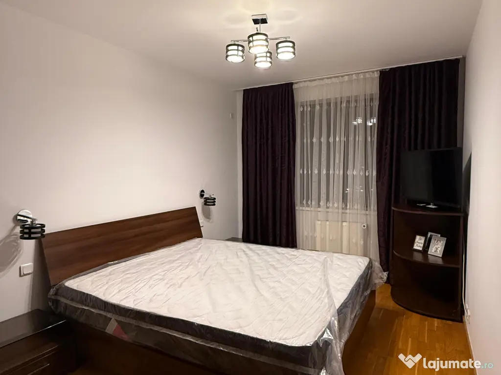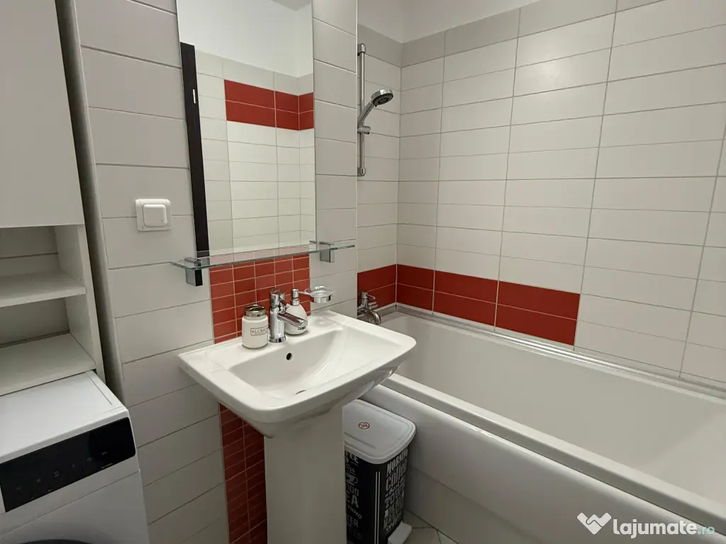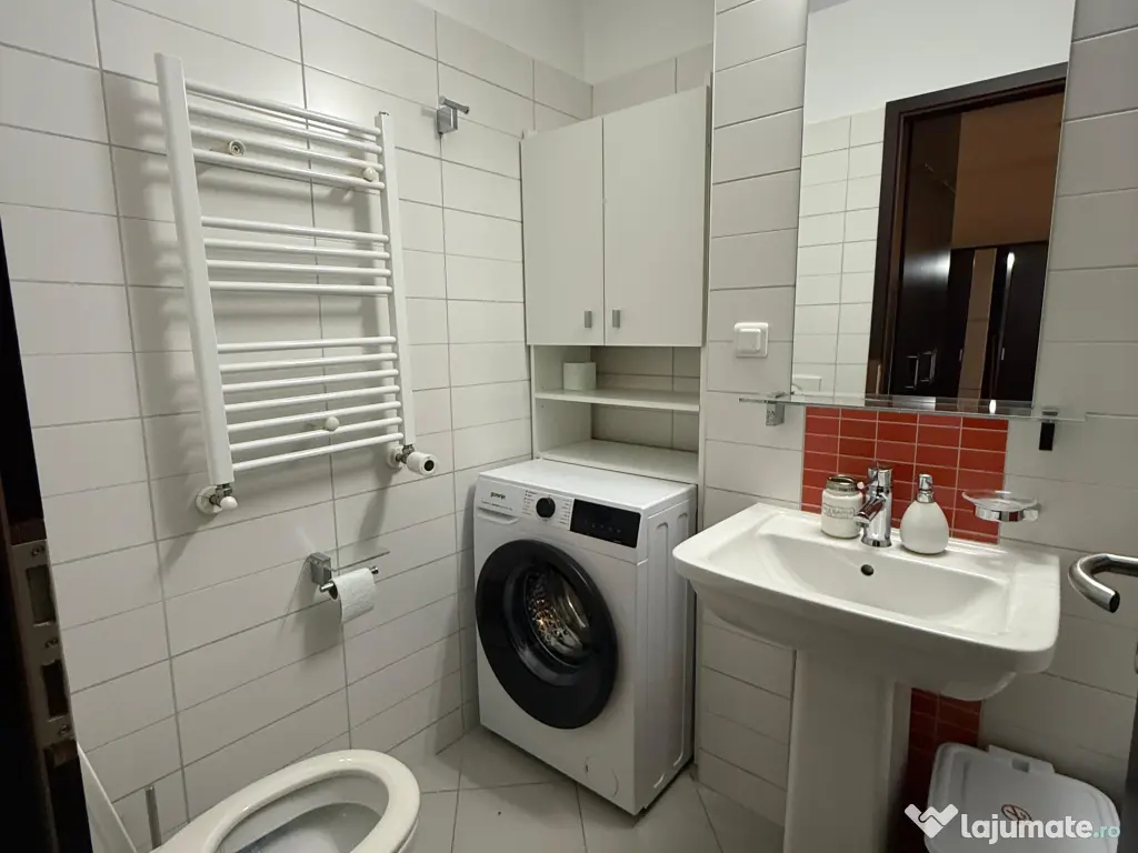 Dotari: Complet mobilat si utilat modern (AC, masina de spalat, combina frigorifica, aragaz/cuptor, centrala termica de bloc).