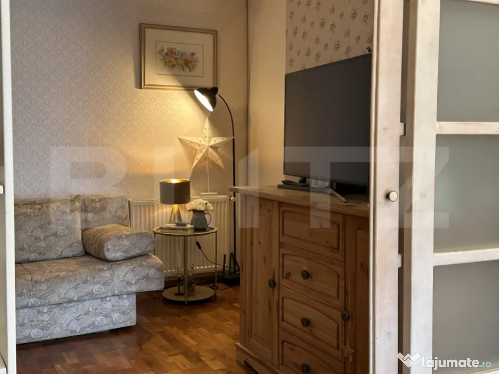 BLITZ vă propune spre vanzare in EXCLUSIVITATE, un apartament cochet, mobilat și utilat, gata de mutare, situat pe strada Florilor din Florești, perfect pentru cei care caută confort și funcționalitate. Detalii principale: - Suprafață utilă: 58,6 mp utili - Balcon generos: 8 mp, cu expunere frumoasă și lumină naturală pe tot parcursul zilei - Compartimentare inteligentă: 2 camere + nișă birou, ideală pentru lucru de acasă sau studiu - Apartament la cheie, mobilat și utilat complet, gata de mutare imediat Puncte forte: - Design modern și practic - Lumină naturală excelentă datorită expunerii - Zonă liniștită și acces facil către centre comerciale, transport, gradinite sau școli Există posibilitatea achiziționării unui loc de parcare exterior, disponibil separat la prețul de 7.000 € . Ideal pentru siguranța și accesul rapid la mașina ta. Perfect pentru cupluri, familii mici sau persoane care lucrează de acasă și apreciază un spațiu confortabil și practic. Pentru mai multe detalii sau vizionare, contactați-ne acum! Cod ofertă / ID BLITZ: P167013 Id intern: P167013 Confort: 1 Tip imobil: Bloc de apartamente Număr Băi: 1 Nr. locuri parcare: 1