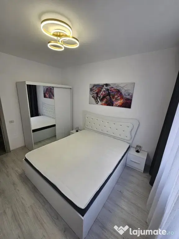 Dormitor mobilat complet cu pat matrimonial si dressing