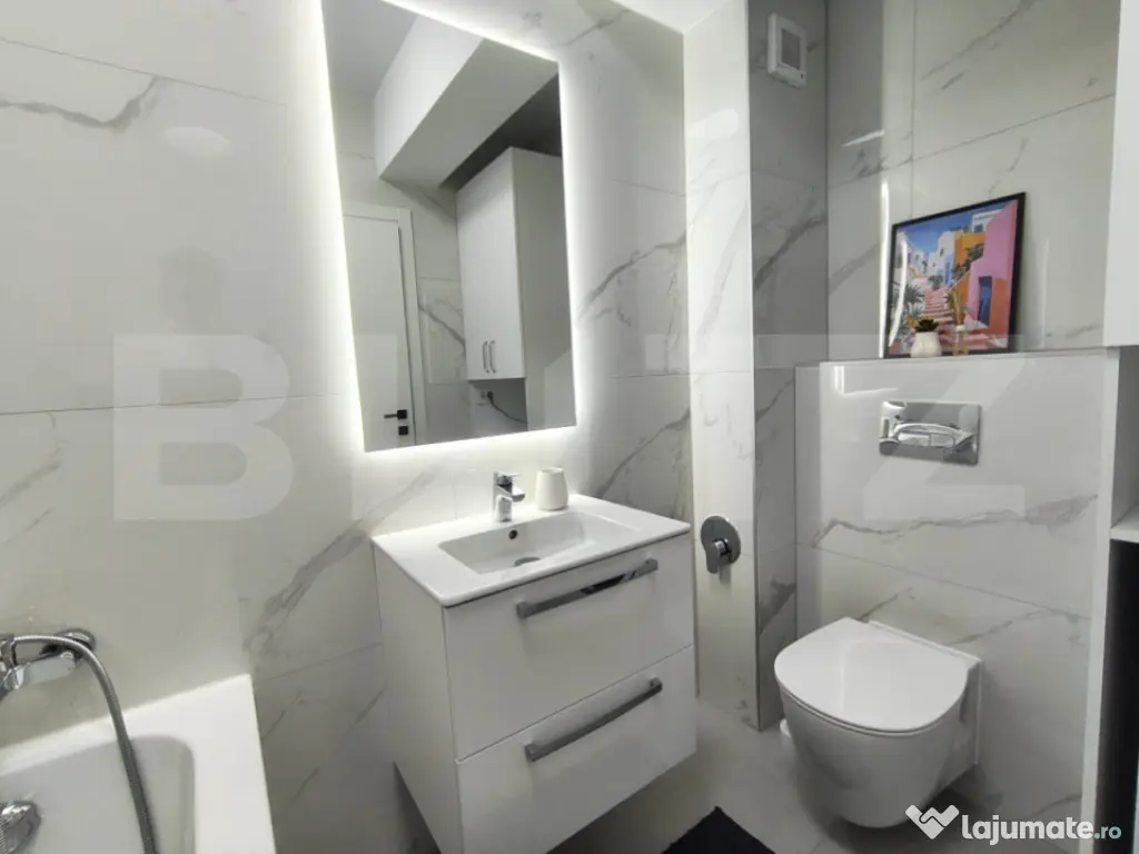 Blitz vă oferă spre închiriere un apartament modern, cu 2 camere, decomandat, situat la etajul 6 din 8, într-un bloc nou, dotat cu lift. Compartimentare(prima închiriere și totul este complet nou) : -living generos, mobilat modern -dormitor confortabil, cu pat matrimonial și dulap spațios -bucătărie separată, complet utilată -baie cu finisaje de calitate -hol cu spații de depozitare Parcare subterană disponibilă (+50 €) Localizare: aproape de facultăți, perfect pentru studenți, la doar 3 minute de mers pe jos de mijloacele de transport. Cod ofertă / ID BLITZ: P151032 Id intern: P151032 Confort: 1 Tip imobil: Bloc de apartamente Număr Băi: 1