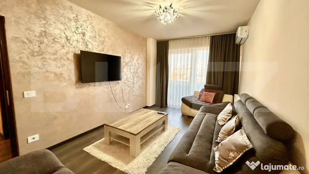 Blitz vă propune spre închiriere apartament spațios cu 2 camere, configurat pentru a oferi un confort maxim și o delimitare clară a funcționalităților. Imobilul este complet mobilat și utilat, fiind pregătit pentru mutare imediată.