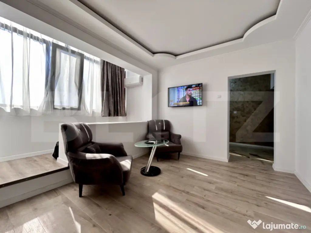 Blitz vă propune spre vânzare un apartament modern și confortabil, ideal pentru tineri sau investiție. Acest apartament de 2 camere, proaspăt renovat și complet mobilat, este disponibil pentru vânzare, oferind o priveliște panoramică superbă asupra orașului. Cu o suprafață utilă de 36 mp, apartamentul este perfect optimizat pentru a oferi un maxim de confort și spațiu. Design modern: Apartamentul a fost renovat cu atenție la detalii, folosind finisaje de înaltă calitate. Plafonul fals cu iluminat ambiental cu LED oferă o atmosferă intimă și relaxantă. Living deschis și dormitor confortabil: Spațiul deschis living-bucătărie este luminos și primitor, ideal pentru relaxare sau pentru a primi oaspeți. Dormitorul oferă un refugiu liniștit, perfect pentru odihnă. Baie luxoasă: Baia modernă este placată cu gresie și faianță de tip marmură, oferind un aspect sofisticat și curat. Cabina de duș spațioasă și finisajele de calitate superioară transformă orice moment petrecut aici într-o experiență relaxantă. Balcon panoramic: Balconul lung, accesibil din living, oferă o vedere extinsă, perfectă pentru a savura cafeaua de dimineață sau pentru a admira apusul de soare. Potențial de investiție: Datorită locației, designului modern și dimensiunii sale, acest apartament reprezintă o oportunitate excelentă pentru un investitor. Este ideal pentru a fi închiriat pe termen scurt, prin platforme precum AirBNB, sau pe termen lung. De asemenea, este alegerea perfectă pentru o persoană singură sau pentru un cuplu care caută un cămin gata de locuit. Facilități în zonă: Locația centrală a apartamentului oferă acces rapid la o gamă largă de facilități, asigurând un stil de viață urban și dinamic. Shopping și cumpărături: Ploiesti Shopping City, magazine locale, supermarket-uri. Zone de interes: Bulevardul principal, magazine, restaurante și cafenele. Transport: Stații de transport în comun în imediata apropiere. Nu ratați ocazia de a viziona acest apartament! Pentru mai multe detalii și programarea unei vizionări, vă rugăm să ne contactați. Cod ofertă / ID BLITZ: P153710 Id intern: P153710 Confort: 2 Tip imobil: Bloc de apartamente Număr Băi: 1