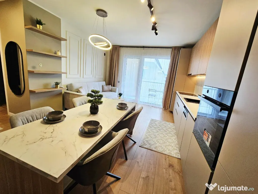EDIL Florești vă prezintă un apartament cu 2 camere în ansamblu rezidențial nou finalizat în 2025, situat pe strada Eroilor din Florești – o locație centrală cu acces excelent la toate facilitățile urbane.Apartamentul este amplasat la etajul 6 dintr-un imobil cu 6 etaje, dotat cu 2 lifturi pe scară, având o suprafață utilă de 54 mp și o logie generoasă de 6 mp, cu orientare nord-vest. Un avantaj major este că apartamentul nu a fost niciodată locuit, fiind complet nou. Compartimentarea este practică și eficientă: living cu bucătărie open-space, dormitor confortabil, baie modernă, dressing pentru depozitare si hol de acces. Apartamentul beneficiază de încălzire în pardoseală, ferestre tripan de ultima generație și mobilier personalizat realizat la comandă. Electrocasnicele sunt marca Whirlpool, incluzând mașină de spălat vase și mașină de spălat haine cu uscător.Pentru detalii suplimentare sau pentru a programa o vizionare, vă așteptăm la sediul nostru, Str. Eroilor, Nr. 25, Ap. 15 (et. 1), Florești, sau ne puteți contacta telefonic.