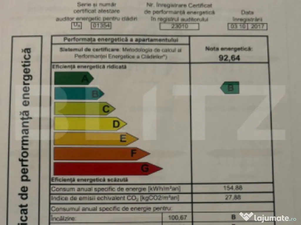 Blitz oferă spre vânzare un apartament cu 2 camere decomandat, completat de mansardă locuibilă, situat în zona Hlincea, o zonă rezidențială liniștită, aflată în continuă dezvoltare, la doar 1,8 km de Bulevardul Poitiers – oferind acces rapid către oraș și principalele puncte de interes. Proprietatea are o suprafață utilă de aproximativ 50 mp, la care se adaugă mansarda amenajată cu cameră și baie proprie, accesul realizându-se prin scară interioară din living, oferind astfel un spațiu suplimentar ideal pentru dormitor, birou sau zonă de relaxare . Apartamentul este situat într-un bloc construit în 2017, realizat din cărămidă, cu clasă energetică B, beneficiind de centrală termică proprie, aer condiționat și contorizare individuală, ceea ce asigură confort termic ridicat și costuri eficiente de întreținere. Beneficii pentru viitorii proprietari: Compartimentare decomandată, practică și bine optimizată ; Mansardă funcțională ce oferă spațiu suplimentar față de un apartament standard cu 2 camere ; 2 băi – confort sporit pentru familie sau musafiri ; Loc de parcare propriu inclus, un avantaj major în zonă . Proprietatea reprezintă alegerea ideală pentru cei care își doresc un apartament modern, cu spațiu suplimentar și intimitate, într-un imobil relativ nou . Va asteptam cu drag la vizionare ! Cod ofertă / ID BLITZ: P165911 Id intern: P165911 Confort: 1 Tip imobil: Bloc de apartamente Număr Băi: 2 Nr. locuri parcare: 1