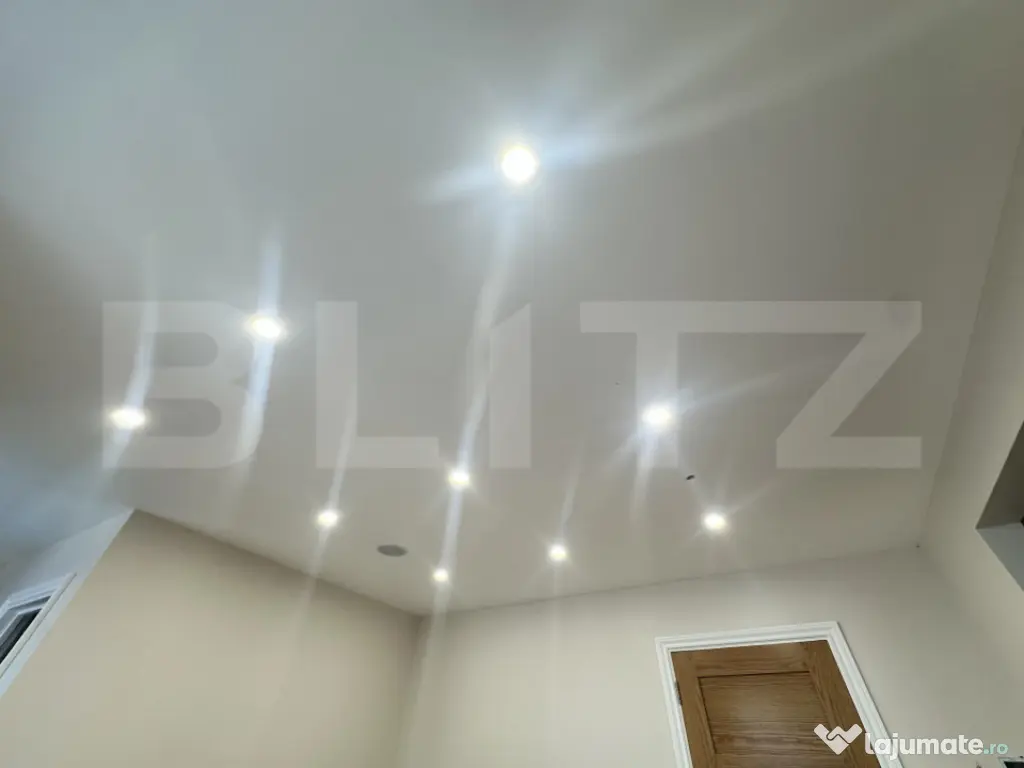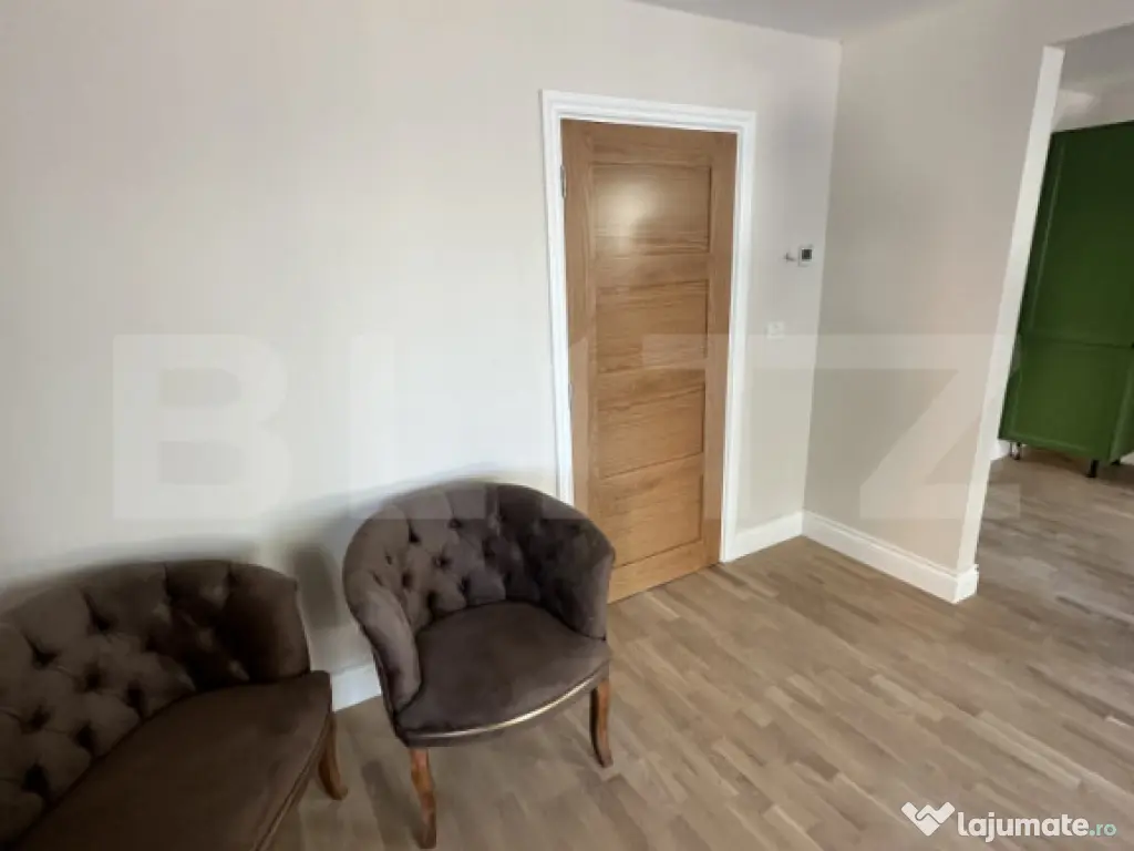 Blitz vă prezintă în exclusivitate un apartament modern cu 2 camere, cu suprafață utilă de 43 mp, situat la Parterul Ansamblului , în compartimentare semidecomandată, într-un ansamblu rezidențial nou care oferă facilități premium precum lift, locuri de parcare și o cafenea la parterul clădirii. Apartamentul este complet mobilat și utilat cu tehnologie de ultimă generație, beneficiind de un sistem audio încorporat în tavan în fiecare încăpere, precum și de un sistem de încălzire și ventilare ultra-eficient realizat prin ventiloconvectoare conectate la o pompă de căldură modernă. Accesul în locuință este unul smart, putând fi realizat prin amprentă, cod, cartelă sau cheie. Proprietatea este poziționată într-o zonă foarte bună, cu acces rapid la puncte de interes importante: la câțiva pași se află Școala Generală „Dominic Stanca”, o sală de sport, terenuri de tenis și fotbal, un parc de joacă pentru copii, restaurante și cafenele variate, precum și supermarketuri pentru cumpărături rapide. Acest apartament reprezintă o opțiune ideală pentru cei care caută confort, tehnologie modernă și acces la facilități urbane complete, fiind disponibil exclusiv prin Blitz. Cod ofertă / ID BLITZ: P158006 Id intern: P158006 Confort: 1 Tip imobil: Bloc de apartamente Număr Băi: 1