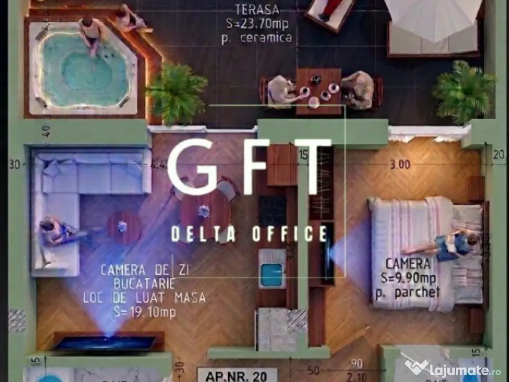 GFT Delta Office prezinta apartament cu 2 camere tip Penthouse zona sud a Bistritei Acesta are o suprafata utila de 38mp cu o terasa de 23.70 mp Compartimentale: - Living open space - 2 bai - Un dormitor - Terasa Proprietatea se afla la etajul 3 dispunand de lift Acesta se vinde finisat la cheie Confort: 1 Tip imobil: Bloc de apartamente Număr Băi: mai mult de 3 Posibilitate parcare: Nu