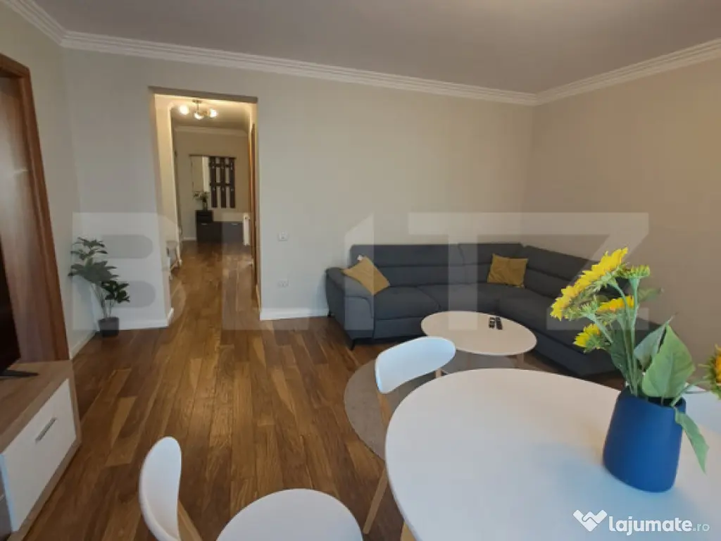Vă prezentăm spre vânzare un apartament superb cu 2 camere, cu o suprafață utilă de 55 mp, gândit pentru confort, liniște și bucuria lucrurilor simple. Este locul în care fiecare dimineață începe cu lumină naturală și fiecare seară se termină într-o atmosferă caldă și relaxantă. Compartimentarea este decomandată, extrem de practică și bine organizată: living primitor, bucătărie separată, dormitor confortabil, baie și hol spațios. Apartamentul dispune de două balcoane – unul cu acces din bucătărie, ideal pentru momentele liniștite de dimineață, și unul cu acces din dormitor, perfect pentru relaxare la finalul zilei. Se vinde complet mobilat, cu bun gust, astfel încât să te poți muta fără griji, într-un spațiu deja pregătit să te primească. Poziționarea este cu adevărat excelentă – în zona Coresi, la nici 5 minute de mers pe jos de toate punctele de interes, oferindu-ți acces rapid la tot ce ai nevoie, dar și liniștea unui cămin modern. Construcția este nouă, finalizată în 2022, ceea ce îți garantează calitate, siguranță și eficiență. În plus, apartamentul vine la pachet cu un loc de parcare inclus – un avantaj important pentru confortul de zi cu zi. Este mai mult decât un apartament. Este locul unde îți poți construi amintiri frumoase. Dacă simți că acesta ar putea fi „acasă” pentru tine, te invităm să îl descoperi. Cod ofertă / ID BLITZ: P167732 Id intern: P167732 Confort: 1 Tip imobil: Casă/Vilă Număr Băi: 1 Nr. locuri parcare: 1