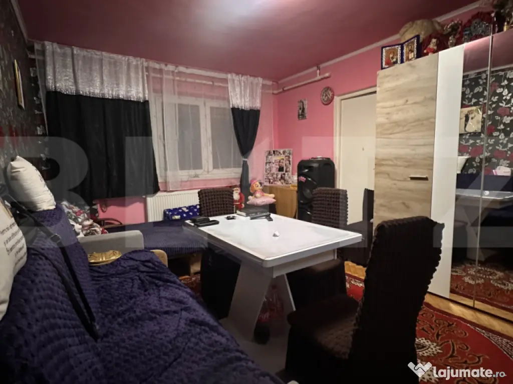 Blitz propune spre vânzare acest apartament cu 2 camere, tip T, semidecomandat. Apartamentul se vinde gol, gata să fie pus la punct și personalizat de următorul proprietar. Etaj 4/4, bloc cu acoperiș de țiglă, de asemenea în pod, cei de la etajul 4 au acces pt spațiu de depozitare, dacă se dorește. Zona e una foarte liniștită. Scara renovata, geamuri termopane pe casa scării. Vă aștept la vizionare! Cod ofertă / ID BLITZ: P163742 Id intern: P163742 Confort: 2 Tip imobil: Bloc de apartamente Număr Băi: 1
