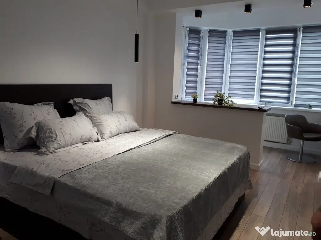 Va propunem spre inchiriere un apartament cu 2 camere complet mobilat si utilat, la etajul 6 intr-un imobil de 10 etaje, in zona Gheorgheni, avand o suprafata utila de 55 mp. Apartamentul este compartimentat astfel: - dormitor cu pat matrimonial, dressing, noptiere, TV, aer conditionat - bucatarie complet dotata si echipata cu plita electrica, masina de spalat vase - baie cu cada, calorifer port prosop inox si dulap pentru depozitare. Se afla in apropierea statiilor de transport in comun, magazine, restaurante, spatii verzi, farmacii, etc. Pentru mai multe informatii nu ezitati sa ne contactatila numarul de telefon afisat. Confort: 1 Tip imobil: Bloc de apartamente
