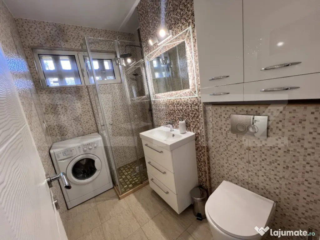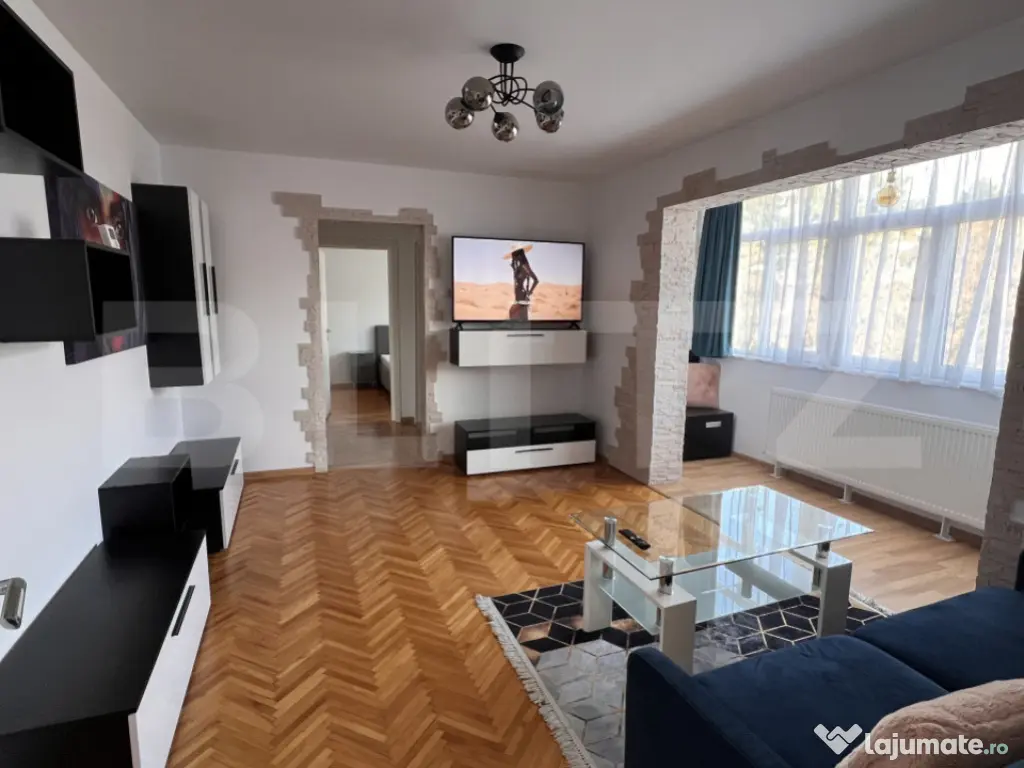 Blitz propune spre închiriere un apartament cu 2 camere, cu o suprafață de 60 m², situat în zona Hotel Royal Classic, o locație apreciată pentru liniște și accesibilitate. Proprietatea beneficiază de o poziționare excelentă, la doar 5 minute de Iulius Mall, oferind acces rapid către zonele de interes ale orașului. Apartamentul este mobilat și utilat, fiind pregătit pentru mutare imediată. Bucătăria este complet echipată, incluzând frigider, mașină de spălat vase și mașină de spălat rufe, oferind tot confortul necesar pentru traiul zilnic. Confortul termic este asigurat de centrală termică proprie cu încălzire prin calorifere, iar imobilul este izolat termic, contribuind la eficiență energetică și confort sporit. Locuința dispune de un living generos și luminos, beneficiind de balconul deschis, integrat în zona de zi, ceea ce creează un spațiu aerisit și plin de lumină naturală. Apartamentul este dotat cu două televizoare, oferind un plus de confort. Dormitorul este prevăzut cu un dressing foarte mare, cu uși tip oglindă, ideal pentru organizare eficientă. Baia este amenajată funcțional și dispune de cabină de duș, spațiu în care este integrată și mașina de spălat rufe, optimizând astfel utilizarea spațiului. Un mare avantaj al proprietății îl reprezintă zona foarte liniștită, dar totodată bine conectată, cu acces rapid către stațiile de autobuz și liniile 48, 33 și 30, facilitând deplasarea rapidă către orice punct al orașului. Programează o vizionare și descoperă acest apartament luminos și bine poziționat, ideal pentru un stil de viață confortabil și practic. Cod ofertă / ID BLITZ: P164196 Id intern: P164196 Confort: 1 Tip imobil: Bloc de apartamente Număr Băi: 1