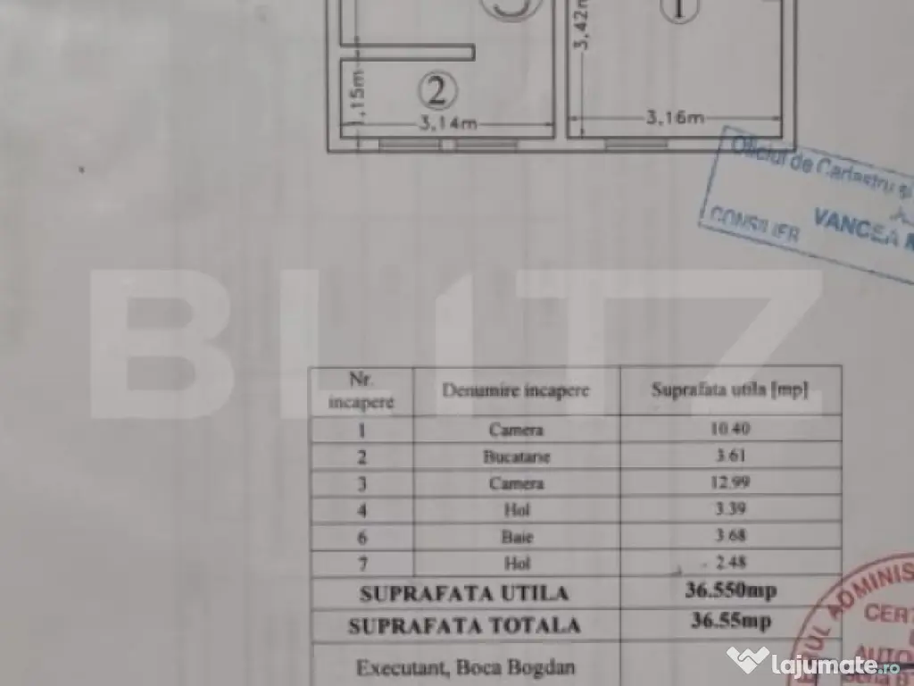 Blitz vă propune spre vânzare un apartament de 2 camere, cu o suprafață utilă de 36,55 mp, situat la etajul 2/3 al unui imobil construit în 2010, amplasat într-o zonă foarte bună, la 5 minute de Iulius Mall, cu acces rapid către toate punctele de interes precum mijloace de transport, magazine, școli, facultăți și alte facilități. Apartamentul este complet mobilat și utilat, fiind ideal atât pentru locuință proprie, cât și pentru investiție. Compartimentarea este practică și funcțională și cuprinde hol de acces, living luminos, bucătărie, dormitor și baie. Imobilul nu are risc seismic, poate fi achizitionat si prin credit ipotecar. Proprietatea se vinde conform fotografiilor și este disponibilă imediat. Pentru mai multe detalii sau pentru programarea unei vizionări, vă așteptăm cu drag. Cod ofertă / ID BLITZ: P160980 Id intern: P160980 Confort: 2 Tip imobil: Casă/Vilă Număr Băi: 1