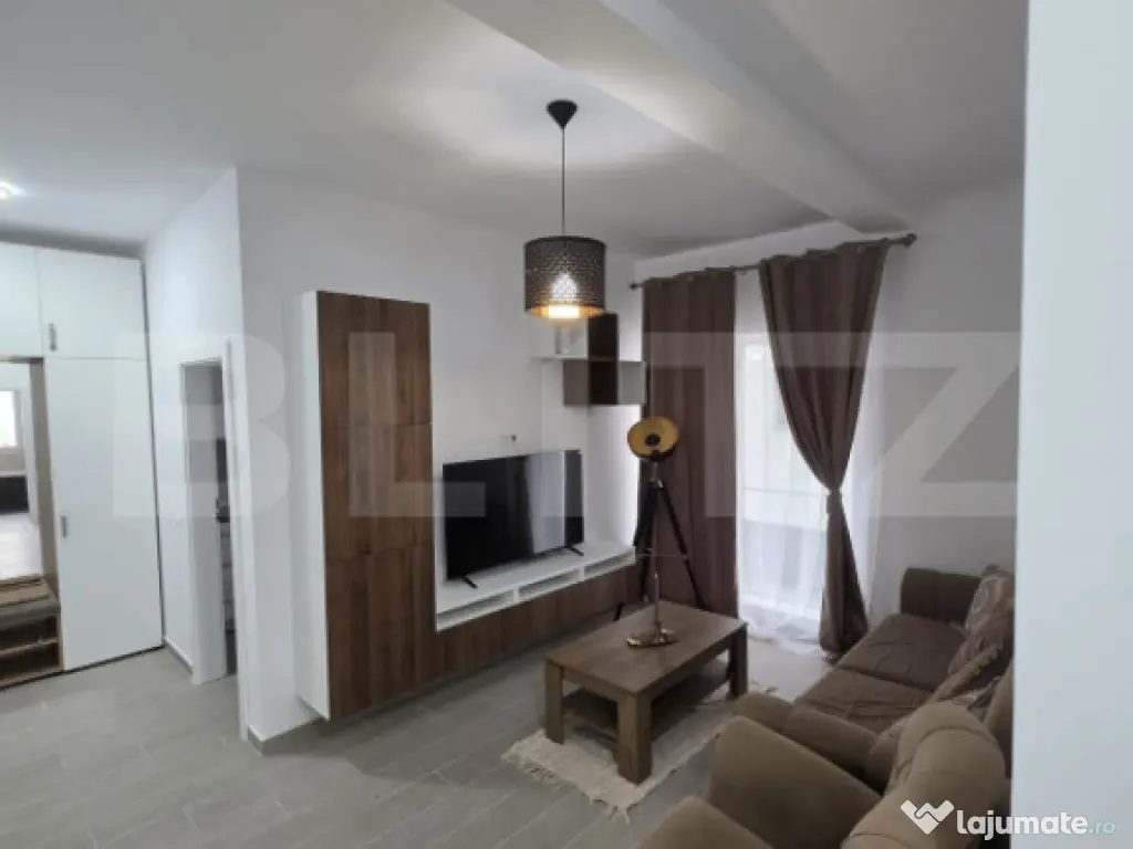 Blitz oferă spre închiriere un apartament complet mobilat, cu o suprafață de 54 mp. Apartament luminos, eficient compartimentat, ideal pentru o persoană sau un cuplu. Este compus dintr-un dormitor cu dressing, sufragerie, bucatarie inchisa, baie cu cada, hol cu spații de depozitare ,un balcon deschis si doua locuri de parcare incluse (unul este acoperit). Se închiriază complet mobilat și utilat, fiind disponibil pentru mutare imediată. ???? Pentru detalii și vizionări, vă stăm la dispoziție. Cod ofertă / ID BLITZ: P168881 Id intern: P168881 Confort: 1 Tip imobil: Bloc de apartamente Număr Băi: 1