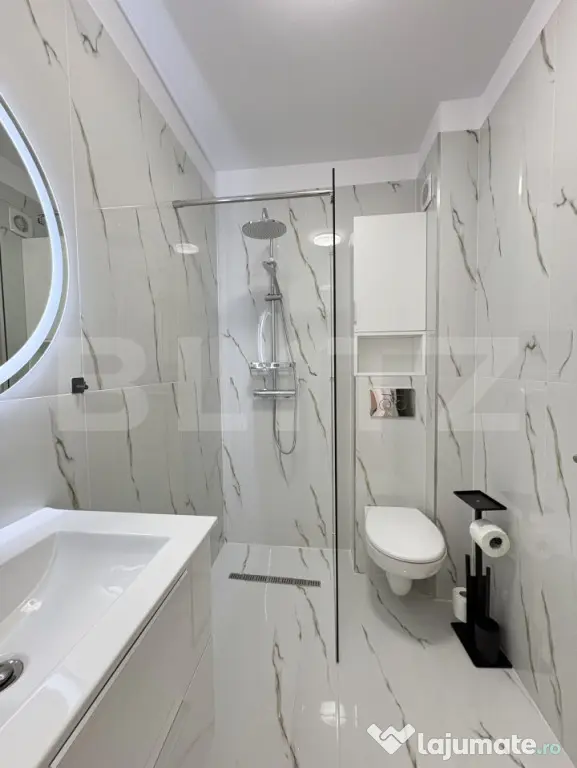 Apartamentul are o suprafață utilă de 50 mp și dispune de un balcon de 4,5 mp. Este complet mobilat și utilat, fiind gata pentru mutare imediată.
