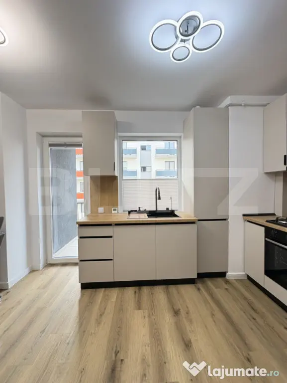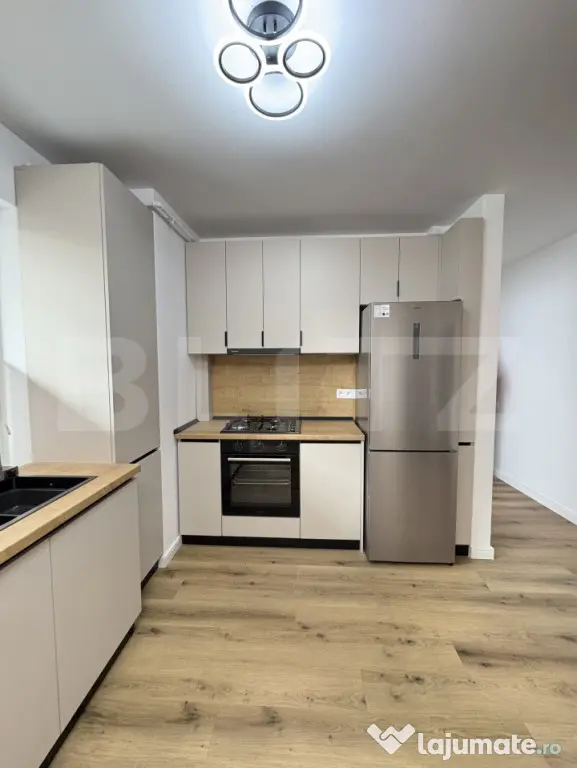 Proprietatea dispune de finisaje moderne, centrală termică proprie, mașină de spălat rufe, frigider, cuptor, plită, mașină de spălat vase, becuri cu telecomandă.