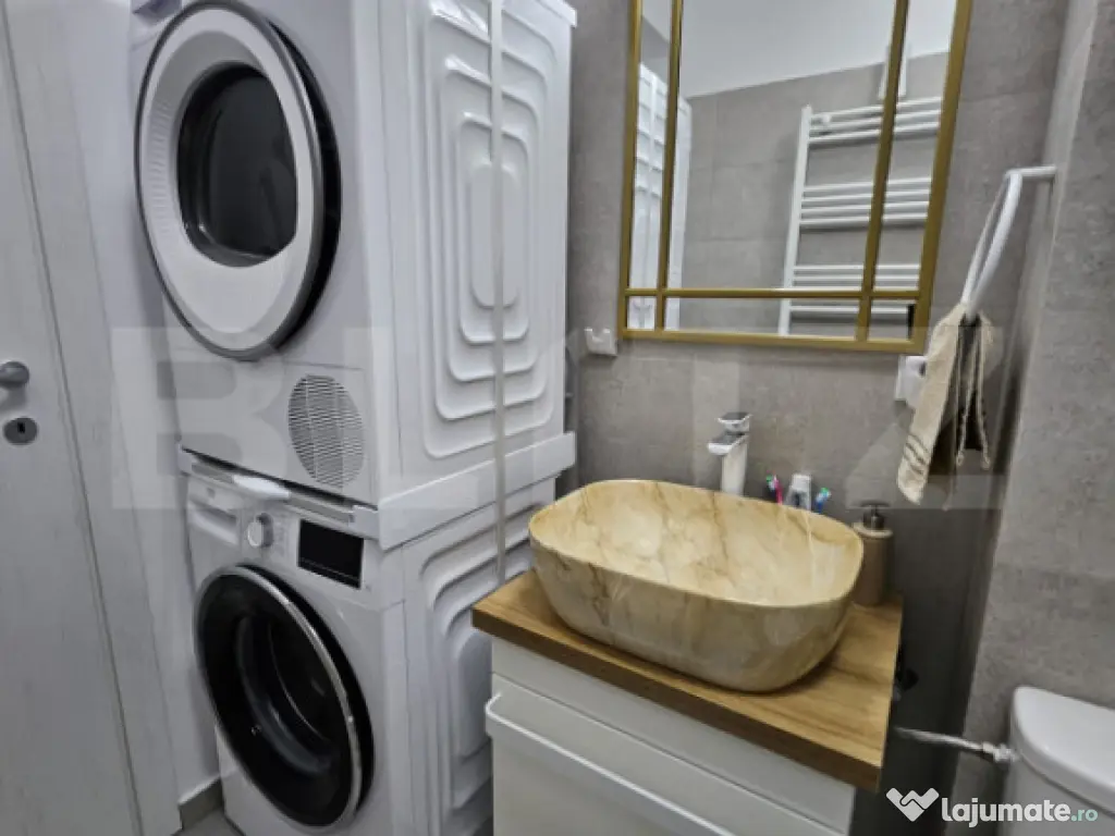Blitz vă propune spre vânzare, în exclusivitate și fără comision pentru cumpărător, un apartament deosebit, situat în complexul Green Residence, la etajul 4/5 al unui bloc nou, construit în anul 2023. Imobilul impresionează prin designul modern, accesul securizat cu barieră și interfon, lift silențios de ultimă generație și izolație exterioară completă, oferind un nivel ridicat de confort termic și fonic. Localizarea în zonă verde și liniștită oferă echilibrul perfect între accesibilitate și liniște. Apartamentul are o compartimentare ideală: - Living spațios și luminos - 2 dormitoare, dintre care unul matrimonial cu baie proprie - Bucătărie complet mobilată și utilată - Baie de serviciu - Hol generos Se vinde complet mobilat și utilat, cu mobilier și finisaje de cea mai bună calitate, fiind o locuință pregătită pentru mutare imediată, ideală pentru cei care caută un stil de viață modern, fără compromisuri. Este o oportunitate excelentă pentru locuit sau investiție într-unul dintre cele mai bine cotate ansambluri rezidențiale din zonă! Cod ofertă / ID BLITZ: P157462 Id intern: P157462 Confort: 1 Tip imobil: Bloc de apartamente Număr Băi: 1 Nr. locuri parcare: 1