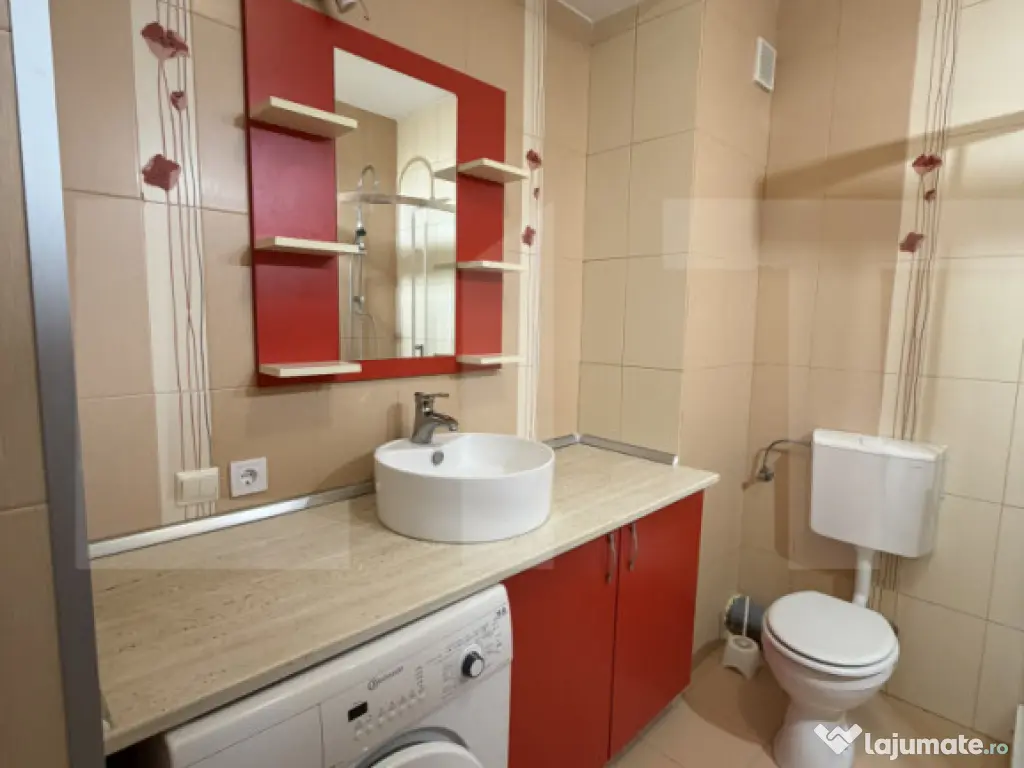 Blitz va propune spre inchiriere apartament modern, mobilat și utilat complet, situat în complexul rezidențial Ared UTA — una dintre cele mai apreciate zone rezidențiale din Arad, cu spații verzi, liniște și acces rapid la toate facilitățile orașului. Apartamentul se află la etajul 6 din 10, într-un bloc modern, oferind lumină naturală generoasă și o compartimentare inteligentă care maximizează spațiul disponibil. Ce include: Living cu bucătărie open space — spațios, luminos, mobilat cu masă dining și bucătărie complet utilată cu plită gaz, cuptor, hotă și microunde Dormitor matrimonial — pat dublu, șifonier, iluminat LED modern, tablouri decorative Al doilea dormitor — pat, birou, șifonier, spațiu de depozitare Baie cu cabină de duș, lavoar, mașină de spălat inclusă Centrală termică proprie — control total asupra încălzirii și apei calde Parchet în toate camerele Mobilat și utilat complet — pregătit pentru mutare imediată Suprafață: 56 mp utili Etaj: 6/10 Compartimentare: open space + 2 dormitoare Centrală: proprie Chirie: 400 euro/lună Ideal pentru un cuplu sau două persoane care doresc confort, liniște și o locație modernă în Arad. Cod ofertă / ID BLITZ: P170051 Id intern: P170051 Confort: 1 Tip imobil: Bloc de apartamente Număr Băi: 1