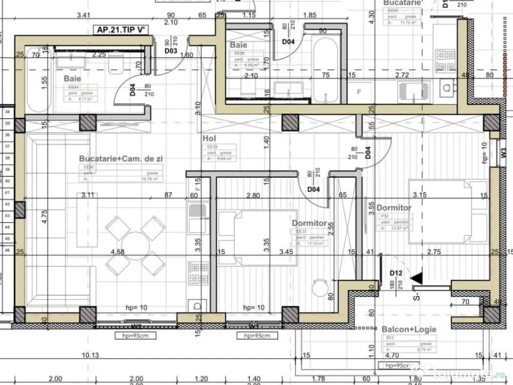 Apartament 3 camere situat in Apahida (Cluj). Pret de vanzare 101.000 euro. Loc de parcare exterioara la 5000 euro sau parcare subterana la 7000 euro *preturile includ tva. Stadiul semifinisat, suprafata 58,12 mp compus din : hol, bucatarie cu living, baie, 2 dormitoare, balcon+logie 6,75 mp situat la etajul 2 din 2. Izolatie exterioara de 15 cm, Terasa placata cu gresie, incalzire prin pardoseala. Se intermediaza prin Agentia Record Imobiliare comision 2%. Confort: 1 Tip imobil: Bloc de apartamente Număr Băi: 1 Comision cumpărător: 2% Posibilitate parcare: Da