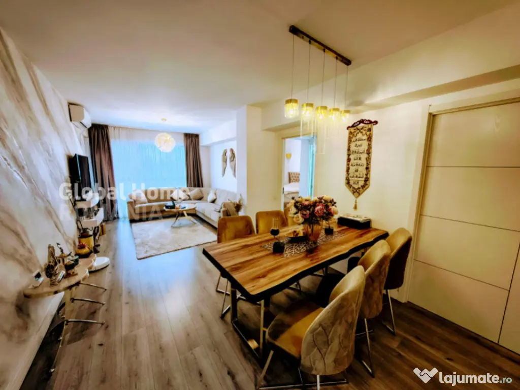 Apartament NOU Superb cu 3 camere cu suprafata utila totala de 75 MP si suprafata construita de 90 MP , aflat in zona Aviatiei, la etajul 2 al unui imobil cu 4 niveluri in complexul Onix North Residence, din zona Aviatiei, sector 1. Pretul proprietatii este fara TVA , este pe persoana fizica ,deci acesta este pretul total cu mobilierul inclus exact cum este in poze. Apartamentul este compus din hol si living spatios amenajat cu zona dining si iesire pe balcon , bucatarie inchisa mobilata si utilata premium , un dormitor matrimonial amenajat cu dressing separat, si o baie matrimoniala prevazuta cu cada si dus , plus inca o a 2-a baie de serviciu cu dus walk-in care se afla la iesirea din living, si inca un dormitor cu dressing amenajat care poate fi folosit ca al 2-lea dormitor sau birou dupa preferinte. Apartamentul este Nou si se vinde mobilat (cum este in poze ) , deasemenea apartamentul detine aer conditionat, centrala proprie si incalzire in pardoseala. Apartamentul prezinta finisaje si mobilier premium , deasemenea este echipat cu electrocasnice de calitate superioara . Apartamentul este Nou si prezinta finisaje de cea mai buna calitate, are o compartimentare foarte eficienta confort 1 plus. Apartamentul are balcon cu zona de relaxare , si are un spatiu util generos in interior . In apropiere se afla Porsche Nord, Kaufland ,Promenada Mall, Pipera Business Park , Pipera Plaza, Parcul Herastrau, cat si multe scoli si gradinite publice si particulare, parcuri si locuri de joaca, restaurante si sali de fitness, dar si mijloace de transport in comun , cat si statta de metron Aurel Vlaicu este 1,5 km, aproximativ 15 min de mers pe jos. ___ Global Home Romania, este o firmă în schimbare de jocuri pe piață imobiliară din România ce se afla intr-o expansiune rapidă. Modelul personalizat avand la baza tehnologia digitala, inteligenta artificala și interacțiune umană alături de colaboratorii firmei, inspiră constant încredere. Având o abordare de marketing profesională și îndrăzneță a ridicat atenția asupra modului în care oamenii se gândesc la imobiliare in Romania. Global Home Romania, companie imobiliara infiintata in 2020 ce continuă să se dezvolte cu succes în domeniu, reușind să atraga constant parteneri și colaboratori de încredere. Cu sediul în București, Global Home Romania, a apărut ca o firmă imobiliară de încredere ce își propune constant să livreze servicii de calitate. Misiunea Global Home Romania în piața imobiliară, este aceea de a stabili un raport solid bazat pe încredere și profesionalism între reprezentantii nostri imobiliari bine informati impreuna cu toti clientii si colaboratorii companiei. Id intern: P16669 Confort: 1 Tip imobil: Bloc de apartamente Număr Băi: 2 Comision cumpărător: 1.5%