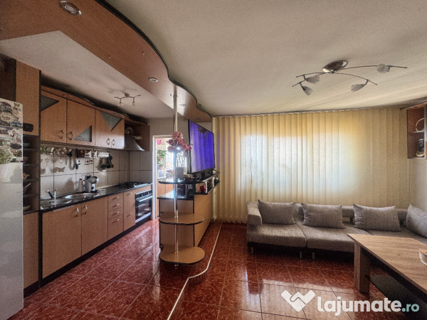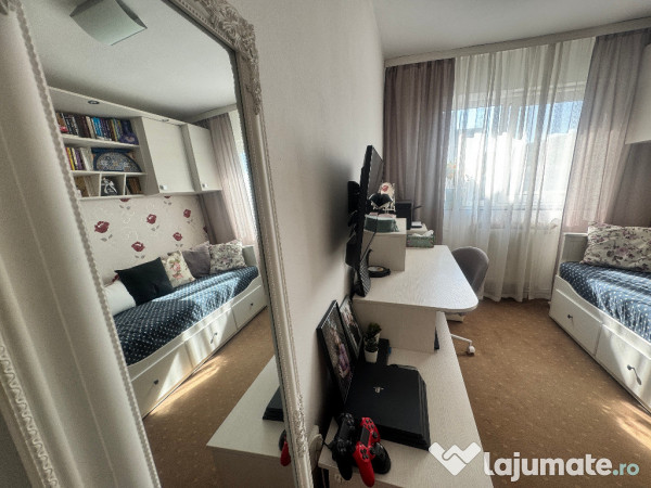 PERSOANA FIZICA - PROPRIETAR fara intermediari, vand apartament cu 3 camere in suprafata totala de 59mp, (56mp utili + balcon), la etajul 9/10 cu lift NOU (panorama deosebita - spre centrul orasului), in cartierul Manastur, str. Mehedinti, blocul de langa intrarea in baza sportiva si de agrement "La Terenuri". Apartamentul are urmatoarea configuratie: un living generos cu bucatarie (open space) si cu iesire pe balcon, dormitor, camera tineret/birou, hol (cu spatii de depozitare inchise), baie si balcon tip logie. Apartamentul se vinde complet mobilat si utilat, exact cum apare in fotografiile din anunt. Dispune de centrala termica proprie, usa metalica, gresie-faianta-parchet, usi de interior schimbate, ferestre termopan, logie inchisa cu termopan, sistem de alarma, televiziune/internet prin fibra optica, senzor detectie gaz si electrovalva de siguranta pentru gaz, contoarele pentru apa sunt cu citire de la distanta. Masuta din living este extensibila si reglabila pe inaltime, transformandu-se in masa pentru 6 persoane. Detinem un loc de parcare cu abonament de la primarie. Apartamentul este intretinut si poate fi reamenajat in functie de de nevoile si gustul viitorului proprietar, fiind o baza excelenta, pentru a-ti crea un spatiu exact asa cum iti doresti! Expozitie sudica - la camera de tineret/birou si expozitie estica - la bucatarie, living si dormitor, acestea din urma beneficiaza de o panorama deosebita asupra cartierului si zonei centrale a orasului. Toate actele sunt la zi, fara sarcini/ipoteca/credit pe C.F., cu certificat energetic si relevee avizate. Imobilul dispune de toate facilitatile: in imediata apropiere (Complexul Nora) exista magazine diverse (farmacie, Profi, Mega Image, legume-fructe), doua parking-uri, parc de joaca pentru copii, baza sportiva si de agrement "La terenuri", scoala, gradinita, statie de transport in comun - linia nr.19, langa bloc, iar la distanta de 5 min de mers pe jos exista numeroase alte mijloace de transport in comun (troleibuze, autobuze, tramvai - statia Minerva/zona McDonald Manastur) cu directie pentru toate celelalte cartiere/parti ale orasului, de asemenea padurea Faget se afla in apropierea blocului (250m distanta) - utila pentru persoanele care detin animale de companie, dar si pentru iubitorii de natura si drumetii. La vanzarea acestui apartament NU apare suplimentar plata TVA. Pentru alte informatii si fotografii suplimentare sau daca doriti sa vedeti apartamentul, va rog sa folositi sistemul de mesagerie - raspund prompt! ROG AGENTIILE IMOBILIARE SA NU DERANJEZE! NU DORESC COLABORARE SI NU OFER COMISION!