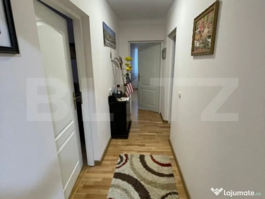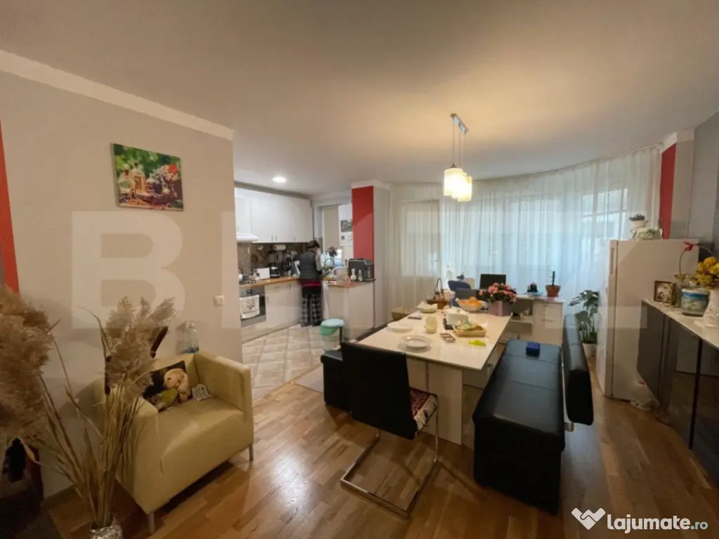 Blitz vă oferă spre vânzare un apartament spațios cu 3 camere semidecomandate, complet utilat, situat într-o zonă liniștită a cartierului Europa, cu acces către toate facilitățile importante, precum magazine, transport în comun, unități de învățământ, săli de fitness, dar și un teren de golf. Confortul este asigurat de 115 mp compartimentați inteligent astfel: - zonă deschisă de bucătărie, dining și living cu șemineu și acces pe balcon - hol cu acces către camere și baia cu cabină de duș și zona de menaj - dormitor principal cu baie proprie și cadă - dormitor / birou cu șemineu și acces pe balcon - balcon cu orientare vestică și vedere către oraș - zonă de depozitare / fitness Apartamentul dispune și de un loc propriu pentru autoturisme în parcarea cu barieră a blocului, inclus în prețul de listare. Vă așteptăm la vizionare! Cod ofertă / ID BLITZ: P140744 Id intern: P140744 Confort: 1 Tip imobil: Bloc de apartamente Număr Băi: 2 Nr. locuri parcare: 1