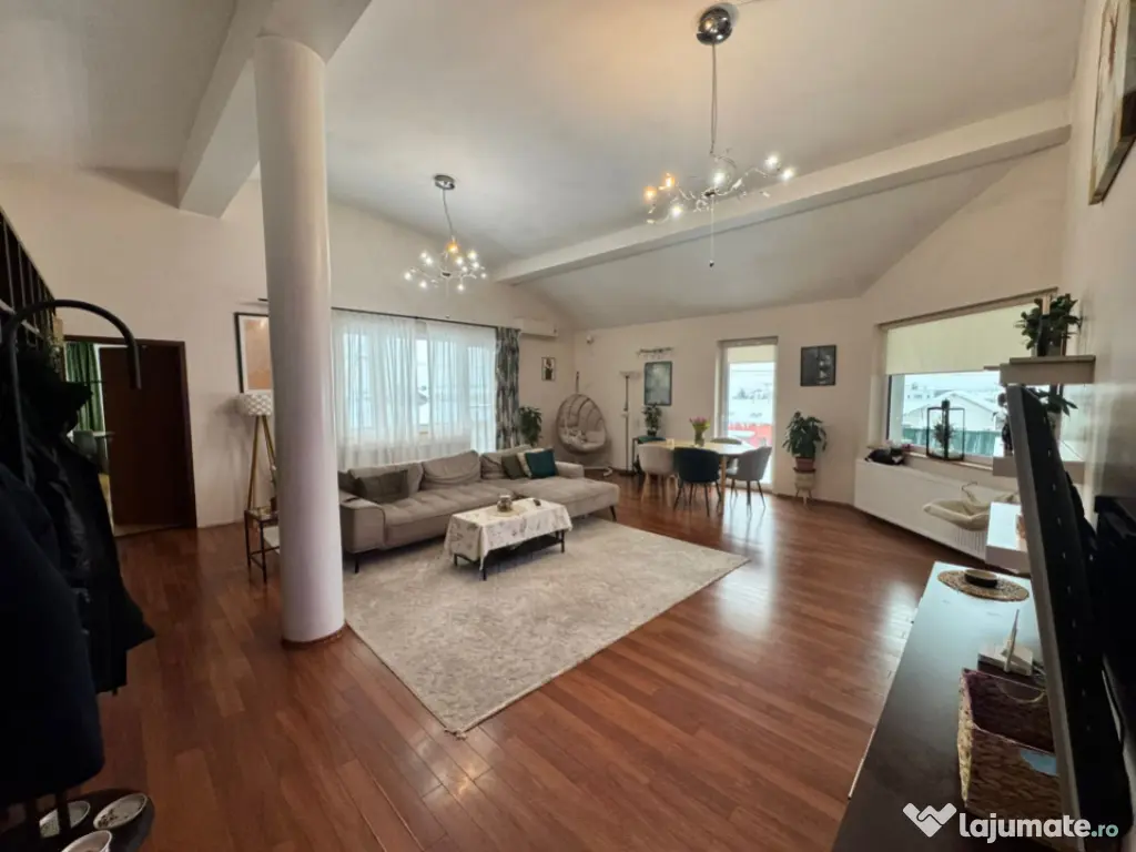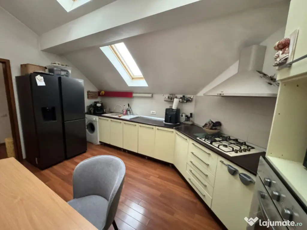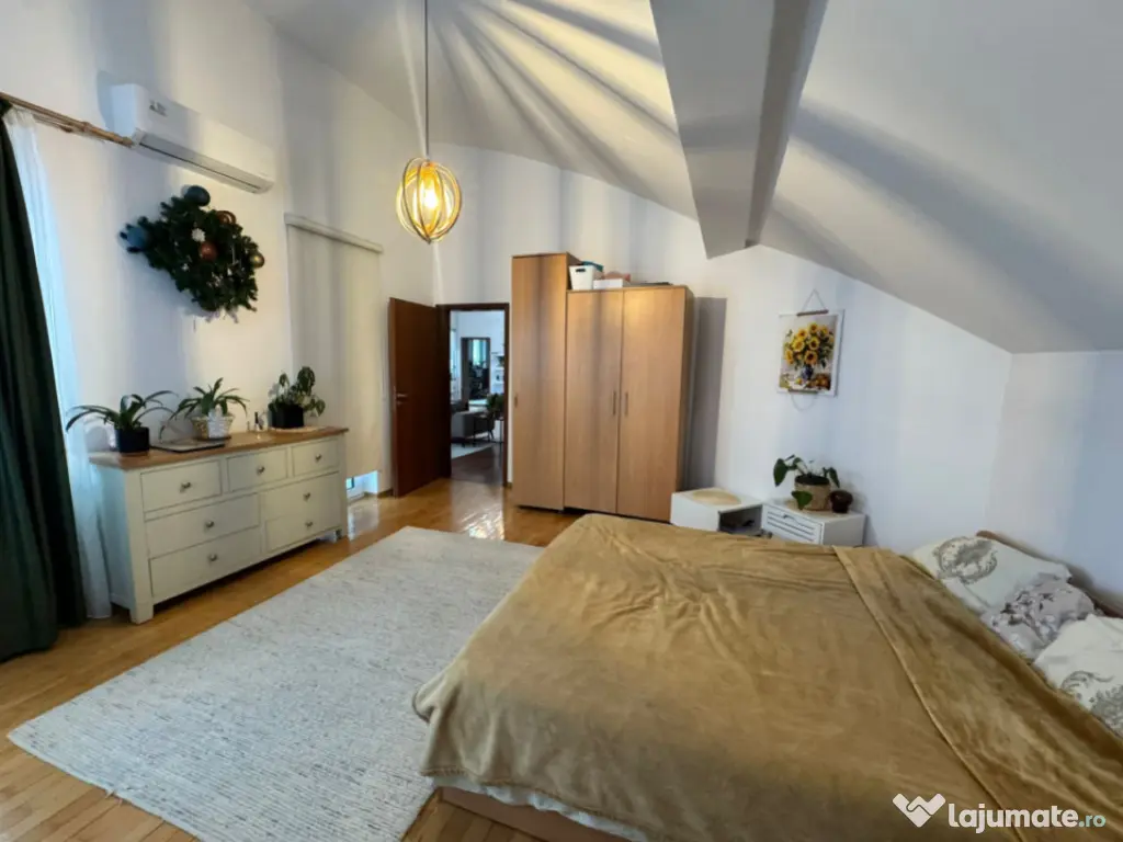 Blitz propune spre vânzare un apartament generos, decomandat, situat într-un imobil tip vilă, construit în anul 2006 într-o zonă liniștită, sigură și aerisită, ideală pentru cei care își doresc confort si intimitate. Locuința dispune de o suprafață utilă de 130 mp, la care se adaugă un garaj de 19 mp, precum și cota-parte de teren de 9 ari, beneficiind totodată de curte privată, amenajată cu zonă de barbeque și acces securizat prin poartă cu telecomandă. Compartimentarea este practică și bine gândită: • Living generos, cu înălțime de aproximativ 4 metri, foarte bine luminat natural • Bucătărie separată, cu ferestre tip Velux, care asigură lumină și ventilație naturală • Un dormitor matrimonial spațios • Dressing cu zonă de birou, ideal pentru work-from-home • Două băi • Două balcoane deschise, generoase, perfecte pentru relaxare Apartamentul este bine aerisit, beneficiază de lumină naturală pe tot parcursul zilei și este dotat cu: • Centrală termică proprie • Încălzire prin terminale • Izolație exterioară • Acoperiș cu folie bituminoasă • Nu necesita investitii, mutarea se poate face imediat • ideal pentru locuit sau pentru investitie Scara spatioasa,curata cu acces usor. Această proprietate este ideală pentru o familie sau pentru cei care caută un stil de viață modern, într-o construcție nouă, cu avantajele unei case, dar siguranța și organizarea unui apartament. Cod ofertă / ID BLITZ: P161682 Id intern: P161682 Confort: 1 Tip imobil: Bloc de apartamente Număr Băi: 2 Nr. locuri parcare: 1