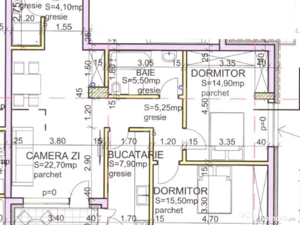 Apartament 3 camere, 2 bai, 92 mp, terasa 14 mp, zona Andrei