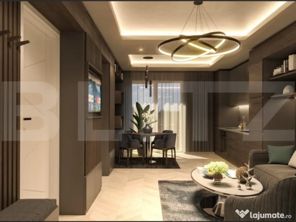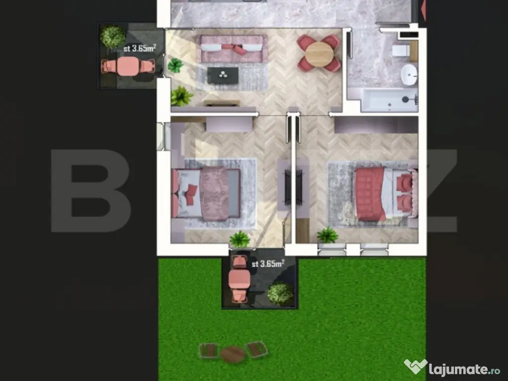 Blitz ofera spre vanzare apartament de 3 camere, intr-un ansamblu rezidential nou, cu o suprafata utila de 55 mp, compus din living, bucatarie, 2 dormitoare, 1 dresing, 1 baie, hol, 2 balcoane si gradina. In incinta ansamblului vor exista spatii comerciale, parc si gradinita. Apartamentele se predau la stadiul de semifinisat, iar preturile nu includ Tva. Exista si posibilitatea de a achizitiona 1 loc de parcare exterior la pretul de 5000 euro sau subteran la pretul de 7000 euro. Cod ofertă / ID BLITZ: P141868 Id intern: P141868 Confort: 1 Tip imobil: Bloc de apartamente Număr Băi: 1