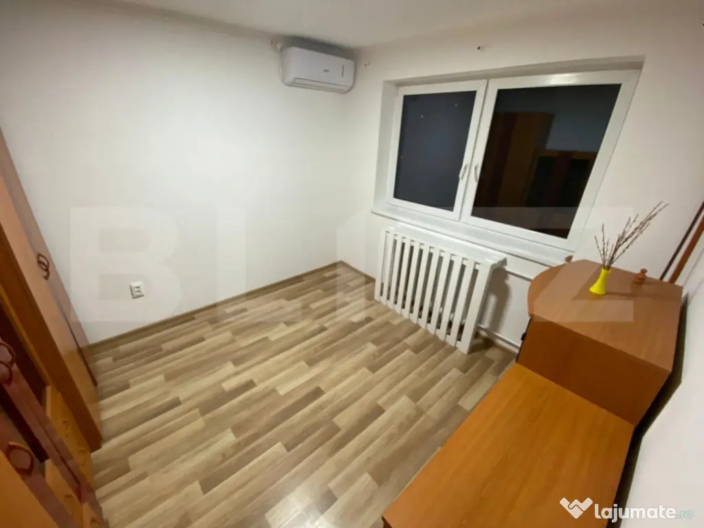 Blitz vă propune spre vânzare un apartament semidecomandat cu 3 camere, situat în cartierul Mănăștur, zona Calvaria, una dintre cele mai liniștite și accesibile zone din vestul Clujului. ???? Detalii apartament: • Suprafață utilă: 49,71 mp • Balcon: 4,6 mp • Etaj: 4 din 4 • Orientare estică și nord-vestică – lumină naturală pe tot parcursul zilei ???? Compartimentare: • 2 dormitoare • 1 cameră de zi • 1 bucătărie mobilată și utilată • 1 baie • 1 hol generos • 1 balcon cu acces din cameră ????️ Renovări și îmbunătățiri recente: • Parchet laminat nou • Pereți zugrăviți cu vopsea lavabilă • Uși interioare din lemn vopsite • Baie placată cu gresie, faianță și dotată cu cabină de duș • 2 aparate de aer condiționat – confort sporit în orice anotimp ???? Locație excelentă: Apartamentul se află la doar câteva minute de stațiile de autobuz, tramvai și troleibuz, precum și în apropierea pieței, magazinelor, școlilor și altor puncte de interes. ✅ Avantaje: • Desi este semidecomandat se decomandeaza foarte usor (a fost decomandat initial) cu un perete la bucatarie , luminos, poziționat excelent • Finisaje actuale și dotări utile • Perfect pentru o familie sau un cuplu care își dorește confort și acces rapid la transport Un apartament cu o compartimentare eficientă, într-o zonă complet dezvoltată, ideal atât pentru locuit, cât și pentru investiție. Pentru detalii suplimentare sau pentru a programa o vizionare, vă stăm cu drag la dispoziție! Cod ofertă / ID BLITZ: P157001 Id intern: P157001 Confort: 1 Tip imobil: Bloc de apartamente Număr Băi: 1