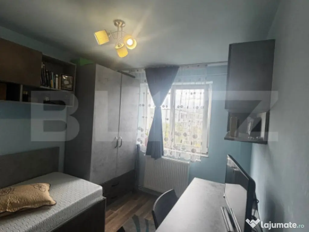 Blitz vă propune spre vânzare un apartament cu 3 camere, semidecomandat, situat la etajul 4 al unui imobil bine întreținut, izolat termic exterior. Apartamentul are o suprafață utilă de 49 mp, compartimentarea fiind eficientă și practică, iar izolația exterioară asigură un confort termic sporit și costuri reduse de întreținere. Zona este linistita si se bucura de acces catre numeroase puncte de interes: scoli, gradinite, magazine, statii de transport public. Un mare avantaj al proprietății îl reprezintă scara blocului- frumoasă, curată și renovată În 2025. Apartamentul se vinde complet mobilat și utilat, fiind pregătit pentru mutare imediată, cât și pentru inchiriere. Pentru mai multe informații sau pentru programarea unei vizionări, vă așteptăm cu drag! Cod ofertă / ID BLITZ: P164622 Id intern: P164622 Confort: 1 Tip imobil: Bloc de apartamente Număr Băi: 1