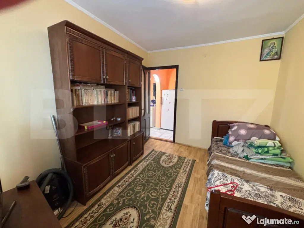 Blitz vă propune spre vânzare un apartament cu 3 camere, situat într-o zonă liniștită și bine conectată a municipiului Iași. Imobilul are o suprafață totală de aproximativ 71 mp, dintre care 62,3 mp suprafață utilă și un balcon generos de 8,2 mp. Compartimentarea este practică și bine echilibrată: living spațios, două dormitoare, bucătărie separată, baie, WC de serviciu, hol generos și spațiu de depozitare (camară). Balconul lung oferă lumină naturală și poate fi valorificat ca zonă de relaxare sau extindere a spațiului util. Apartamentul se vinde mobilat și utilat conform fotografiilor și reprezintă o oportunitate foarte bună pentru cei care doresc să își amenajeze locuința după propriul gust, imobilul necesitând renovare. Structura și compartimentarea permit multiple variante de modernizare și optimizare a spațiului. Zona Nicolina este foarte căutată și apreciată pentru accesul facil către puncte de interes: magazine, mijloace de transport în comun, școli, farmacii și alte facilități urbane, fiind potrivită atât pentru locuit, cât și pentru investiție. Proprietatea oferă un raport foarte bun între suprafață, compartimentare și potențialul de amenajare, fiind ideală pentru o familie sau pentru cei care caută un apartament spațios într-o zonă bine poziționată a orașului. Pentru mai multe detalii sau programarea unei vizionări, vă stăm la dispoziție. Cod ofertă / ID BLITZ: P167054 Id intern: P167054 Confort: 1 Tip imobil: Bloc de apartamente Număr Băi: 2