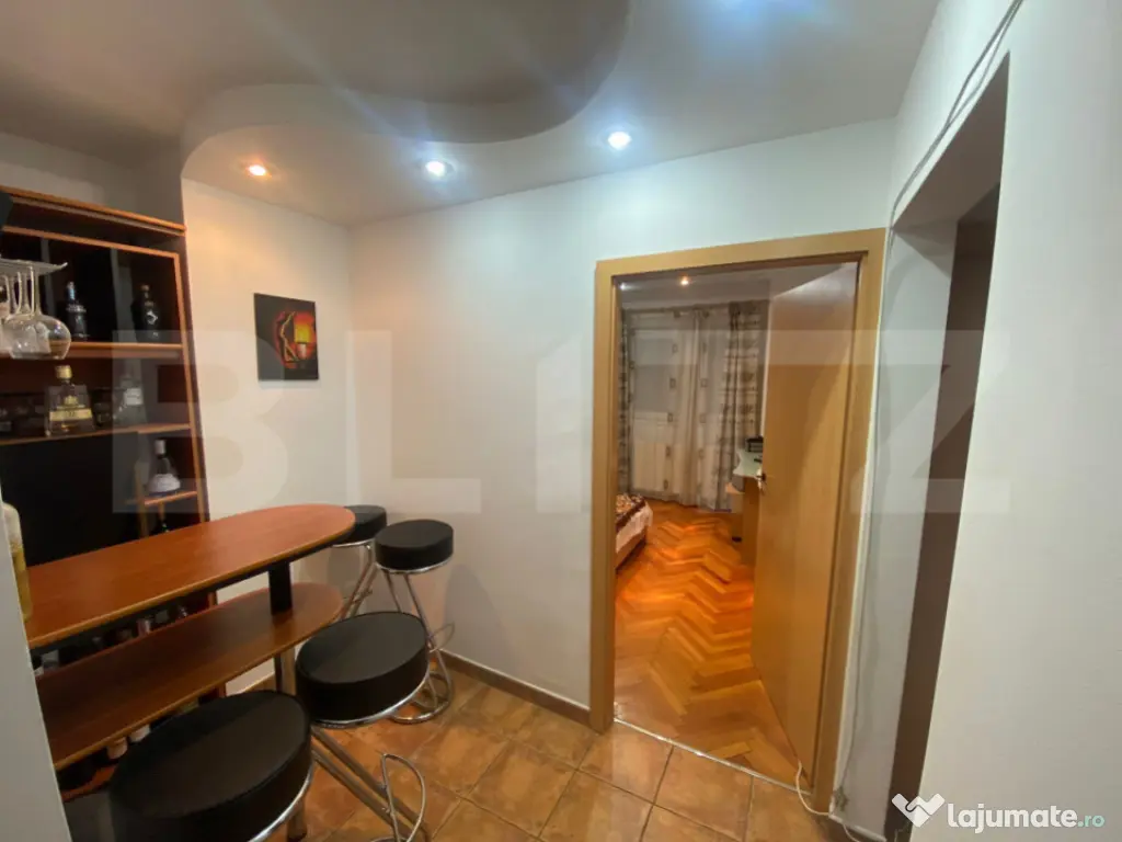 Blitz , vă propune spre vânzare un apartament cu 3 camere intr-o zonă ferită de aglomerație si agitatie, in apropiere de Parcul Pădurice. Imobilul are 63,3 mp utili parțial mobilat, boxă( nu este in Cf), dispune de centrala proprie si clima. In spatele barului trece coloana de apa, se mai poate face o baie acolo. Se vinde partial mobilat. Cod ofertă / ID BLITZ: P157874 Id intern: P157874 Confort: 1 Tip imobil: Bloc de apartamente Număr Băi: 1