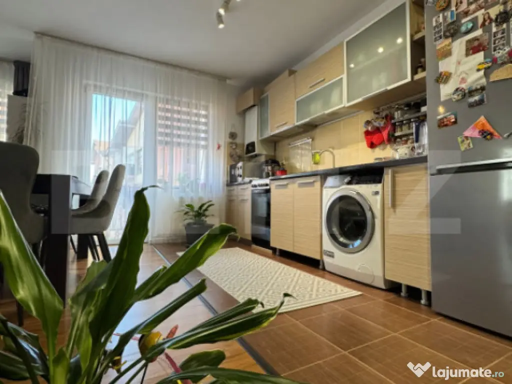 Blitz propune spre vânzare un apartament modern cu 3 camere, decomandat, 64,2 mp utili + balcon, etaj 1, cu 2 locuri de parcare incluse in pret, situat în zona Șesul de Sus – Florești. Poziționat excelent, într-o zonă liniștită, aproape de Profi, magazine, stații de transport în comun și cu acces rapid către strada principală, acest apartament oferă confort, spațiu bine gândit și eficiență energetică, fiind ideal pentru o familie care dorește un loc primitor și complet echipat. ⸻ Detalii principale: • Suprafață utilă: 64,2 mp • Balcon deschis: 3,5 mp, cu debara utilă pentru depozitare • Etaj: 1 • Compartimentare: Decomandat • Construcție: Bloc din cărămidă, finalizat în 2009 • Izolat exterior ⸻ Compartimentare practică: • Living cu bucătărie open-space • 2 dormitoare separate • Baie spațioasă • Hol generos la intrare, cu spațiu pentru pantofar și cuier • Balcon cu debara ⸻ Dotări & finisaje: • Centrală termică proprie + încălzire prin calorifere • Aer condiționat • Tâmplărie PVC tripan (3 straturi de sticlă) • Ușă metalică la intrare • Apartament complet mobilat și utilat, exact ca în poze • Două locuri de parcare incluse în preț ⸻ Avantaje: • Etaj 1, apartament luminos și călduros • Bloc solid, din cărămidă, bine întreținut • Zonă liniștită, cu acces rapid la facilități • Ai 2 masini? Acest apartament dispune de 2 locuri de parcare, deci nu mai faci 3 ture prin zonă până găsești să parchezi pe un loc destinat persoanelor cu dizabilități. • Pentru cupluri si familii care apreciază confortul și spațiul ⸻ Contactează Blitz pentru detalii și programează o vizionare – un apartament complet, eficient și primitor te așteaptă în Florești, zona Șesul de Sus. Cod ofertă / ID BLITZ: P157541 Id intern: P157541 Confort: 1 Tip imobil: Bloc de apartamente Număr Băi: 1